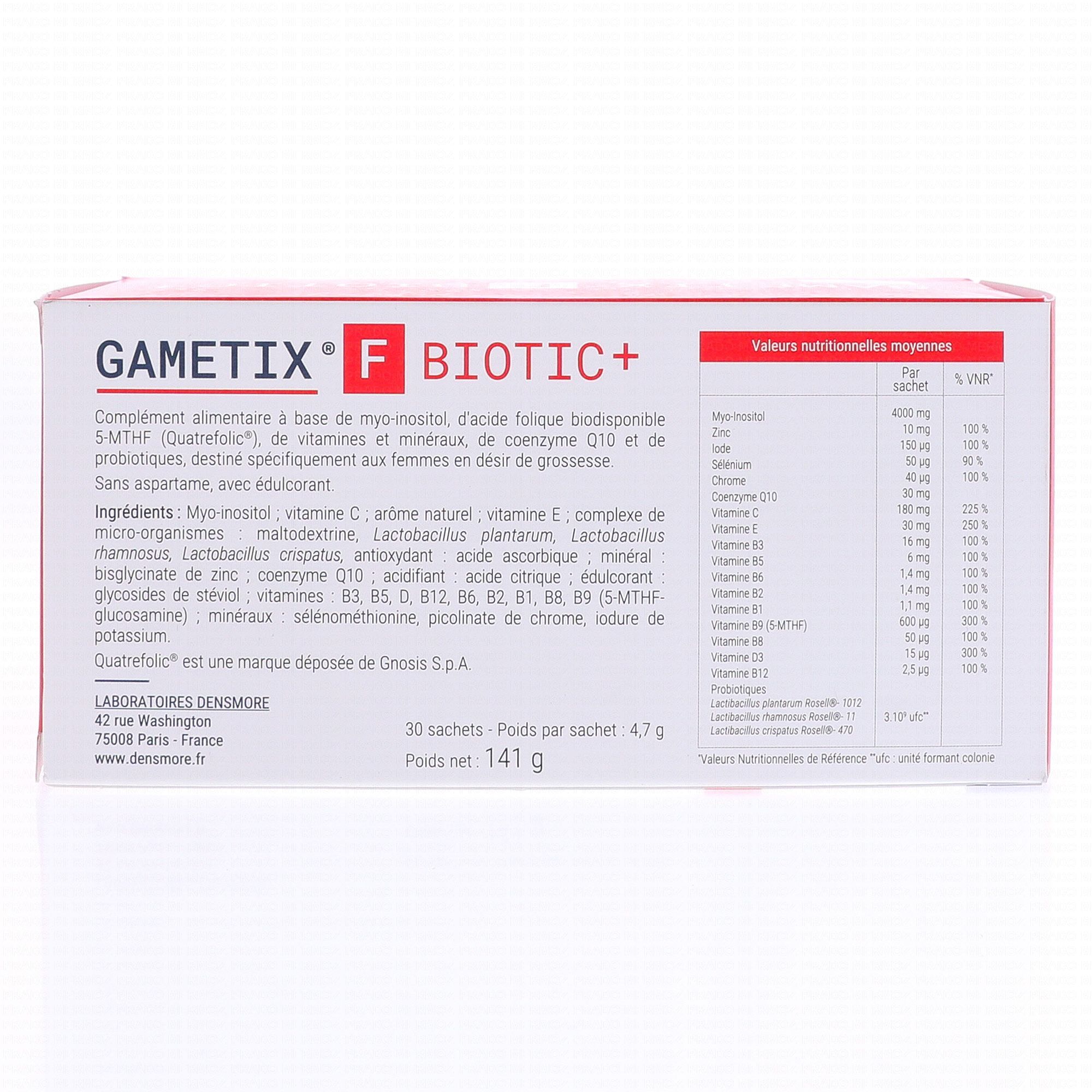 DENSMORE Gametix F Biotic+ Formule Renforcée x30 sachets contient les éléments suivants :