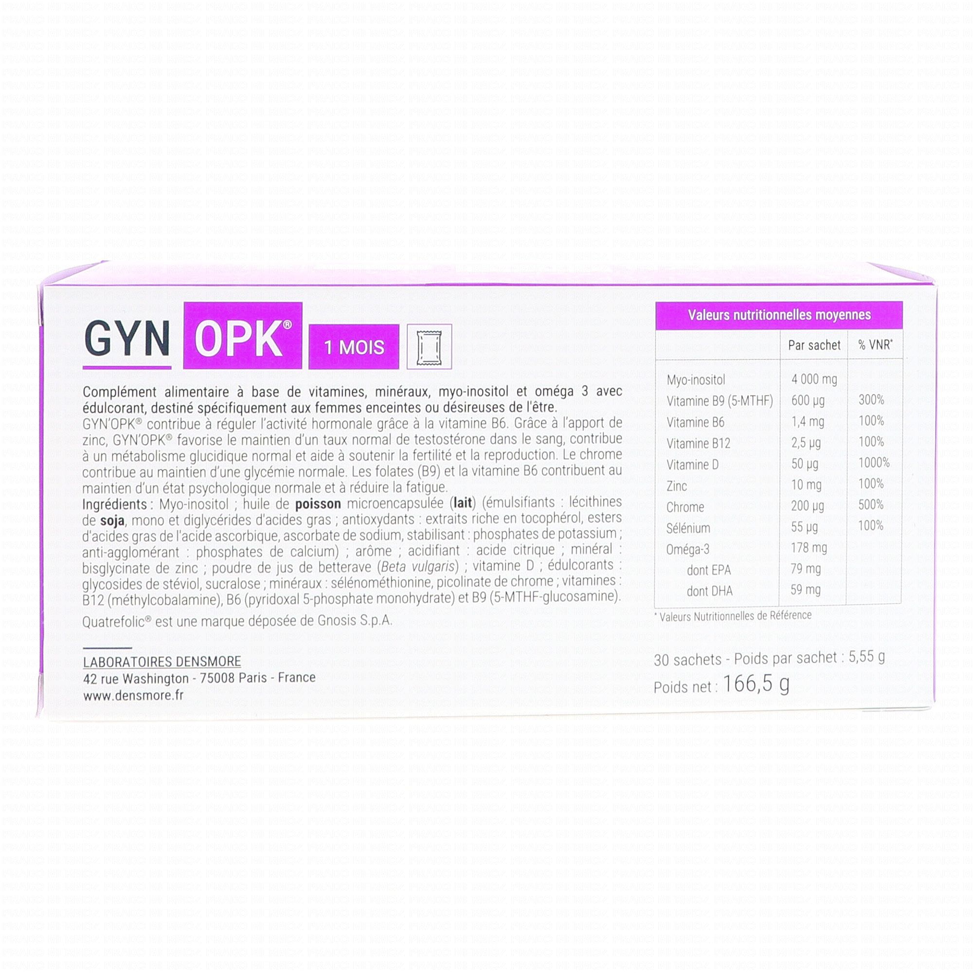 GYN OPK - Régulation hormonale, Equilibre Métabolique, Glycémie x30 Sachets contient les éléments suivants :