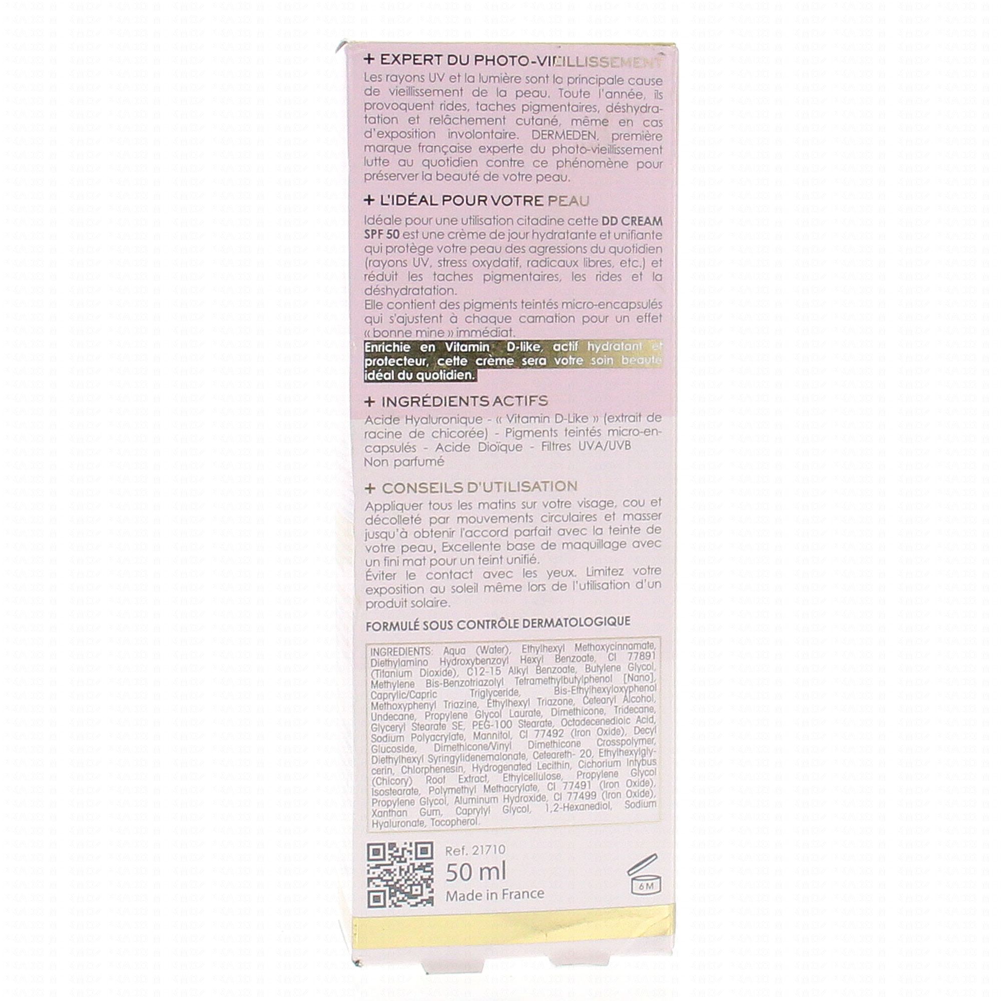La crème universelle Dermeden est destinée aux peaux claires, exposées au stress, à la pollution ou au soleil. Elle procure un effet bonne mine et hydrate votre peau grâce à ses pigments auto ajustables et sa haute protection SPF 50. Sa formule enrichie à la vitamine D-like et en acide hyaluronique permet de prévenir la peau des signes de l'âge. La peau est unifiée et hydratée tout en étant protégée. La DD crème est donc une formule universelle qui respecte tous les types de peaux et dont les pigments s'ajustent à chaque carnation.