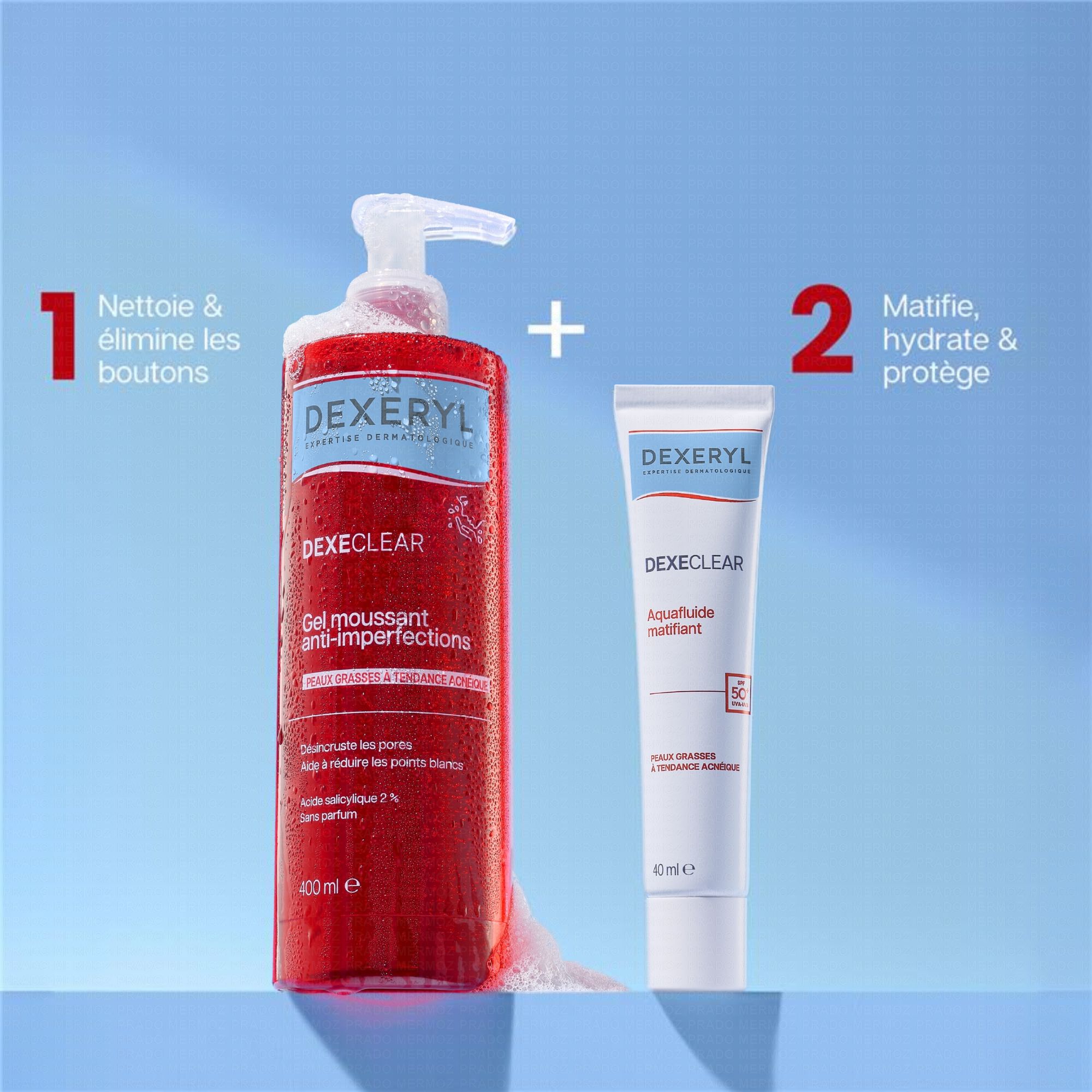 L'aquafluide matifiant SPF 50+ DEXECLEAR matifie, hydrate et protège des rayons UV la peau grasse à tendance acnéique