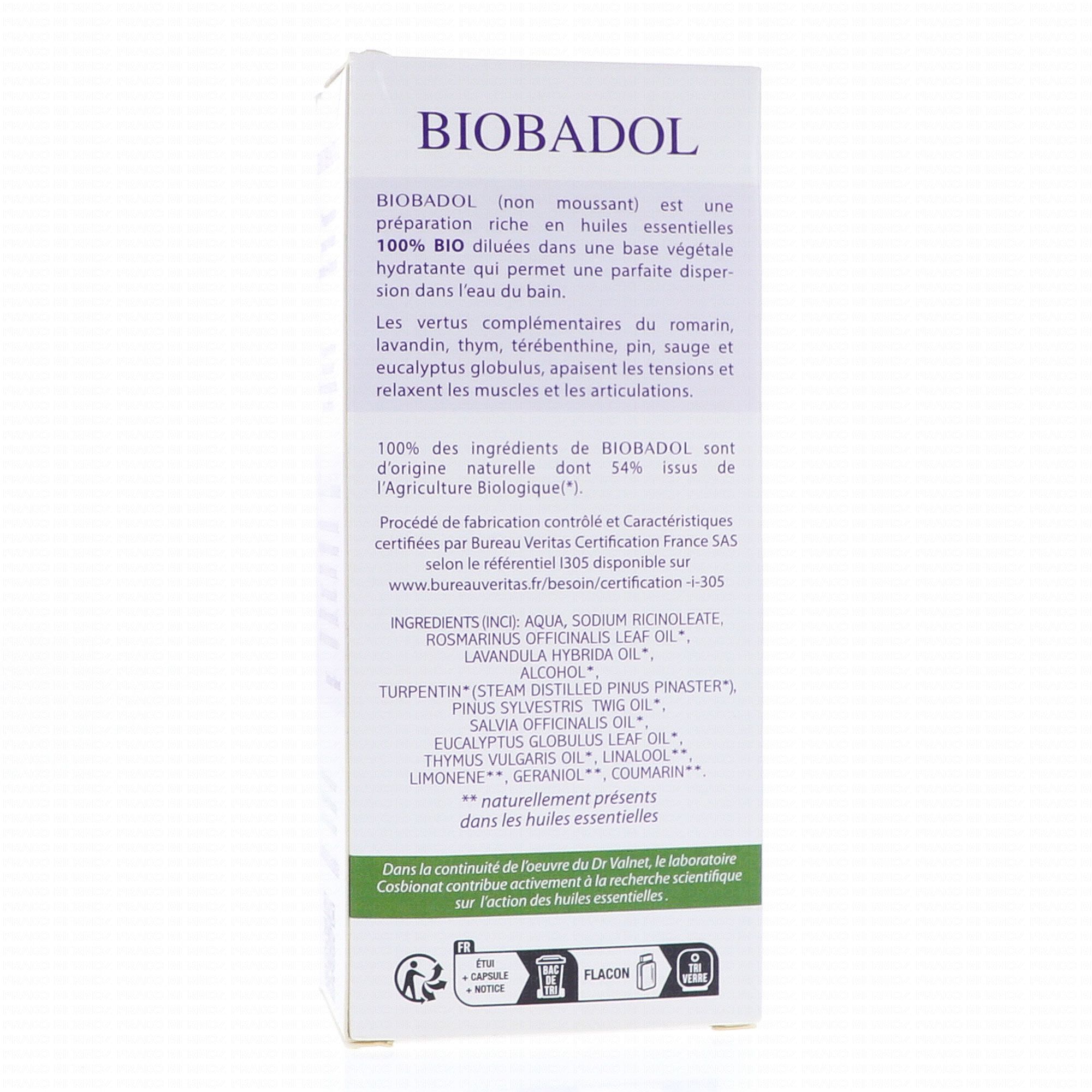 Le bain santé biobadol du Docteur Valnet est un relaxant des muscles et des articulations. Il défatigue, efface les tensions en relaxant les muscles et les articulations. Soin du docteur Valnet, relaxant, rééquilibrant, favorise la détente et le bien-être. Ingrédients issus de l'agriculture biologique. Conditionnement : flacon, étui carton. Péremption après ouverture : 36 mois.