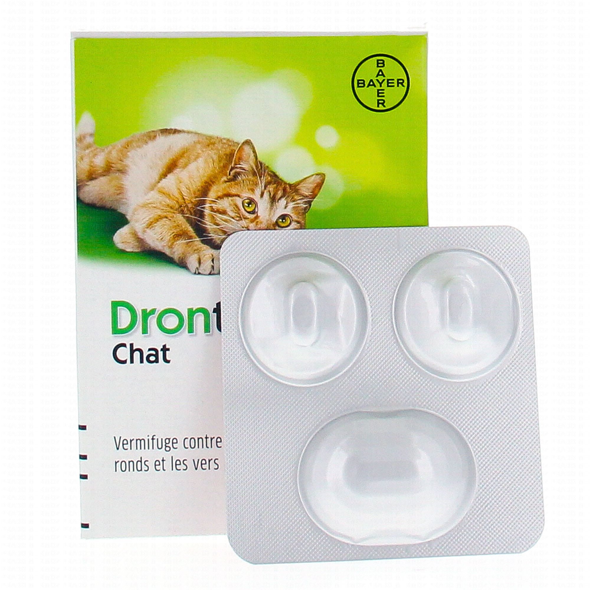 DRONTAL Chat - Vermifuge contre les vers ronds et les vers plats 4 comprimés