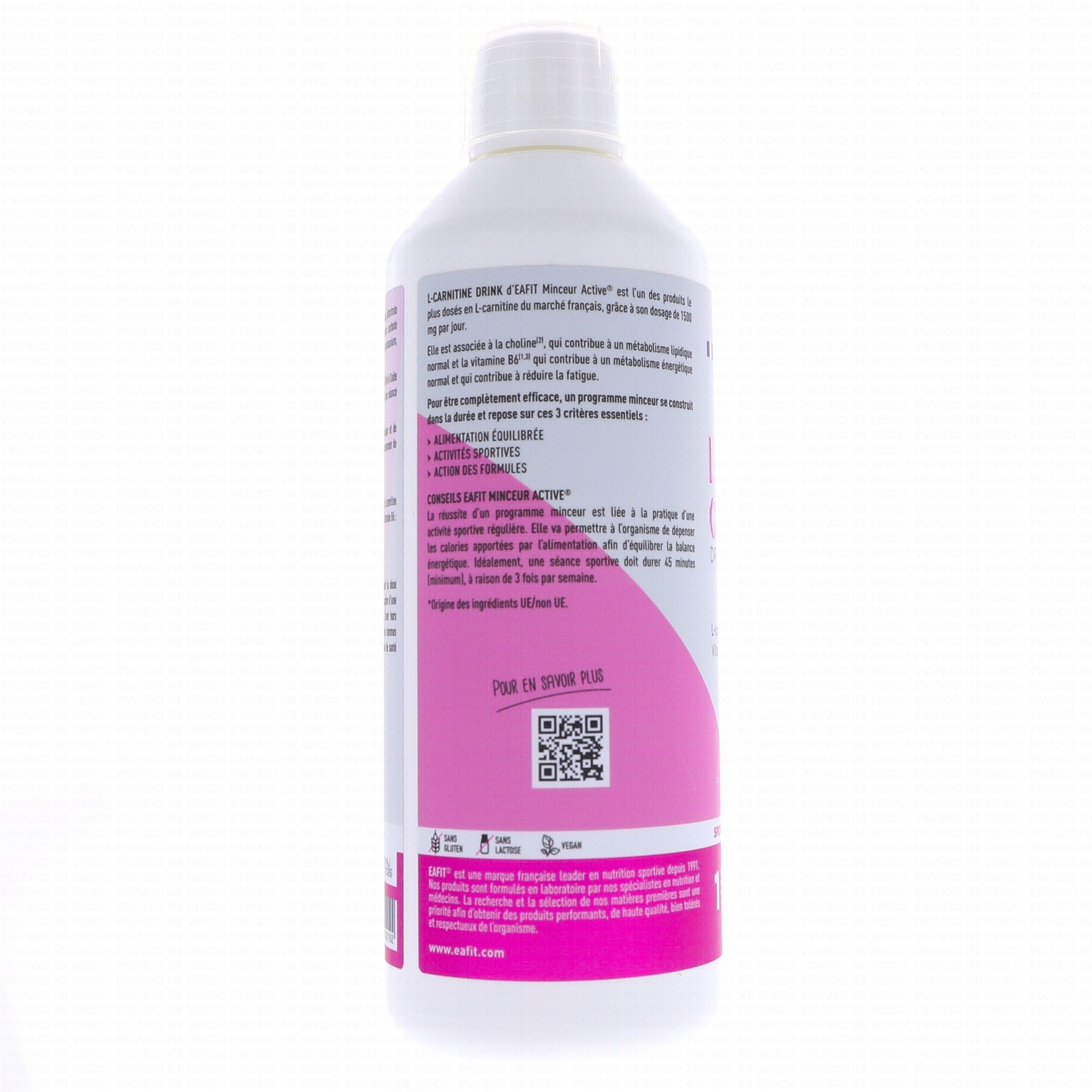 EAFIT L-carnitine drink sport et energie. flacon de 500 ml. grace à la carnitine contribue à la combustion des graisses pendant l'exercice et aide à améliorer la récupération musculaire après l'exercice.
