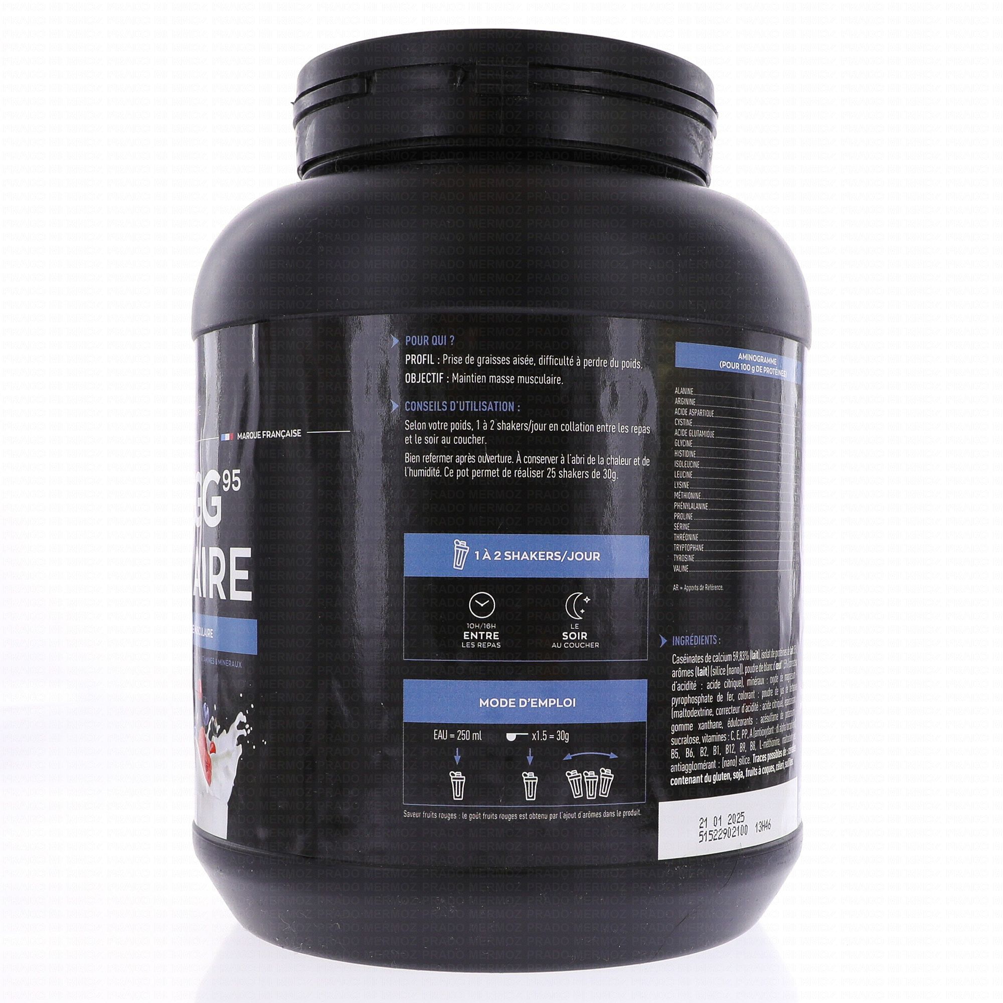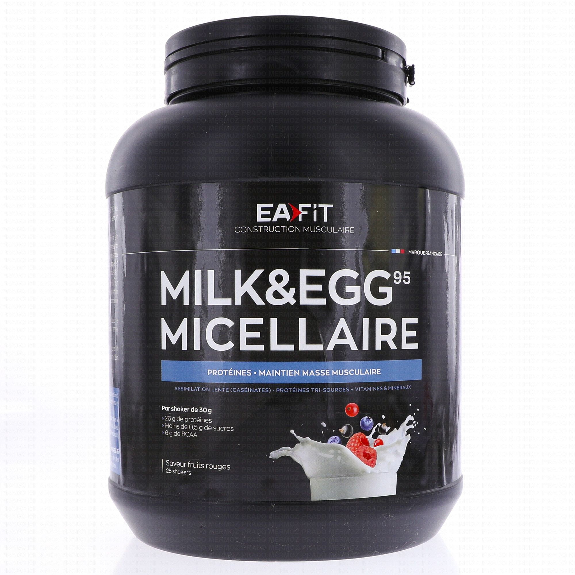 EAFIT MILK & EGG 95 micellaire saveur fruits rouges pot de 750 gr contient les éléments suivants :