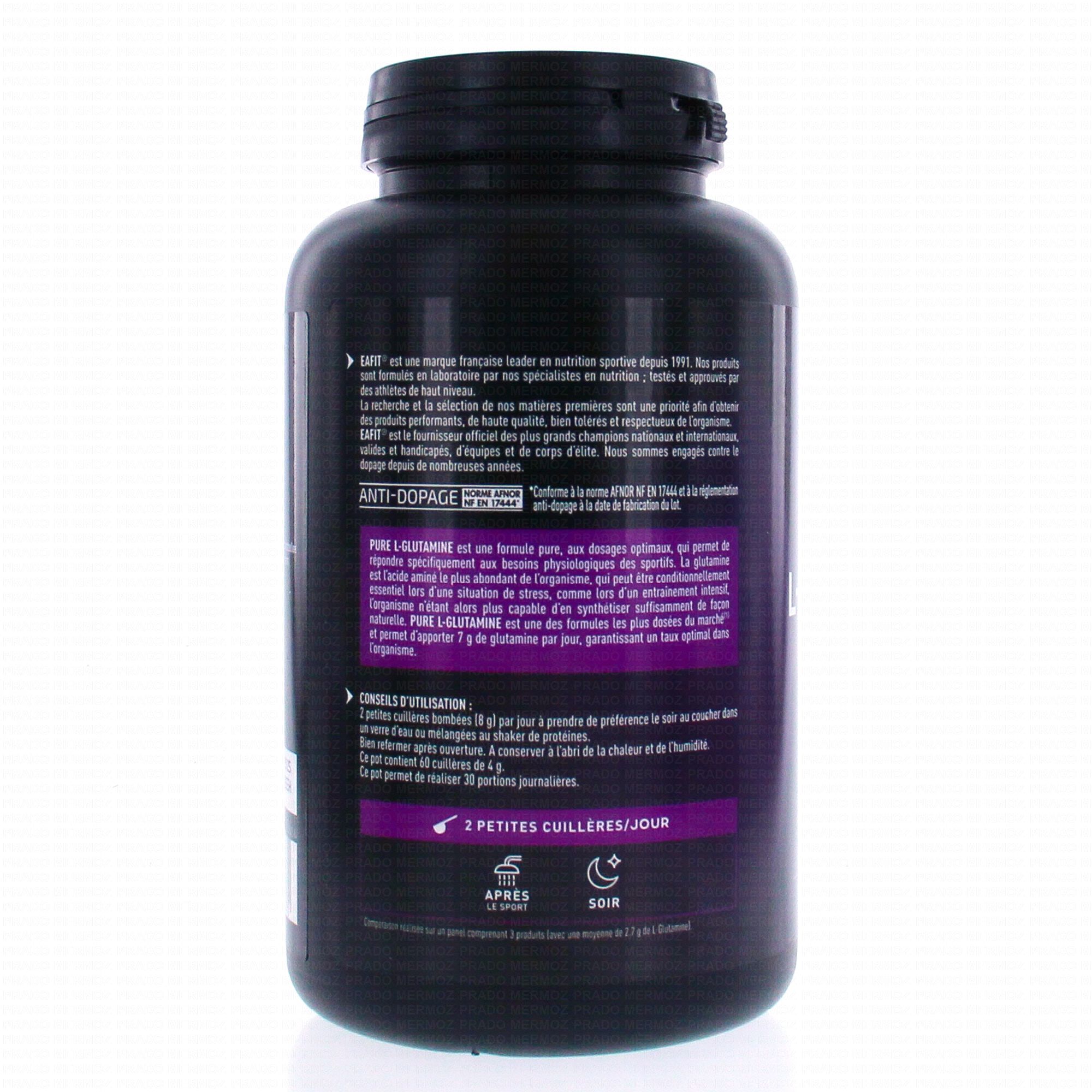 EAFIT Pure L-Glutamine Acide Aminé pot 243g contient les éléments suivants :