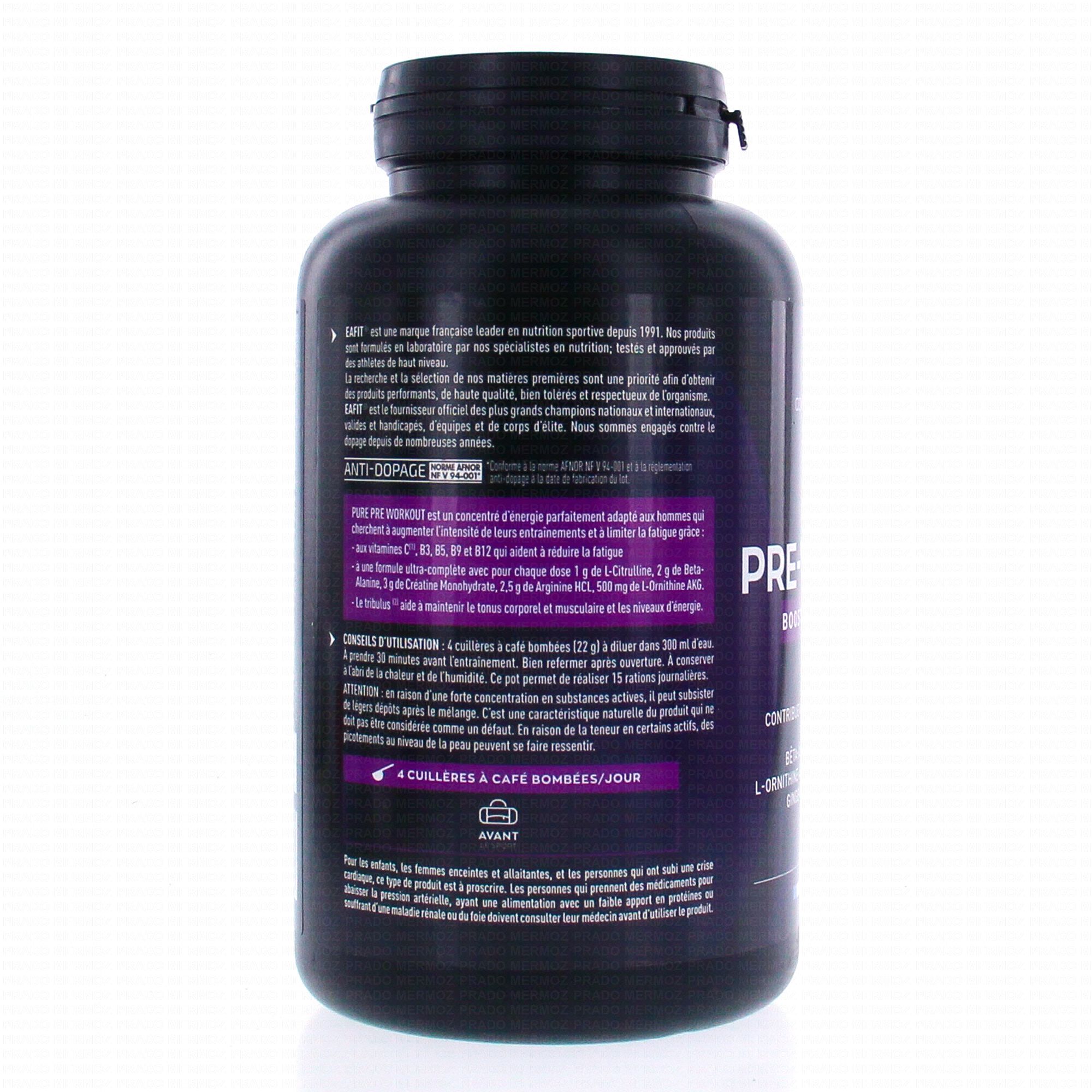 EAFIT Pure Pre-Workout 438g contient les éléments suivants :