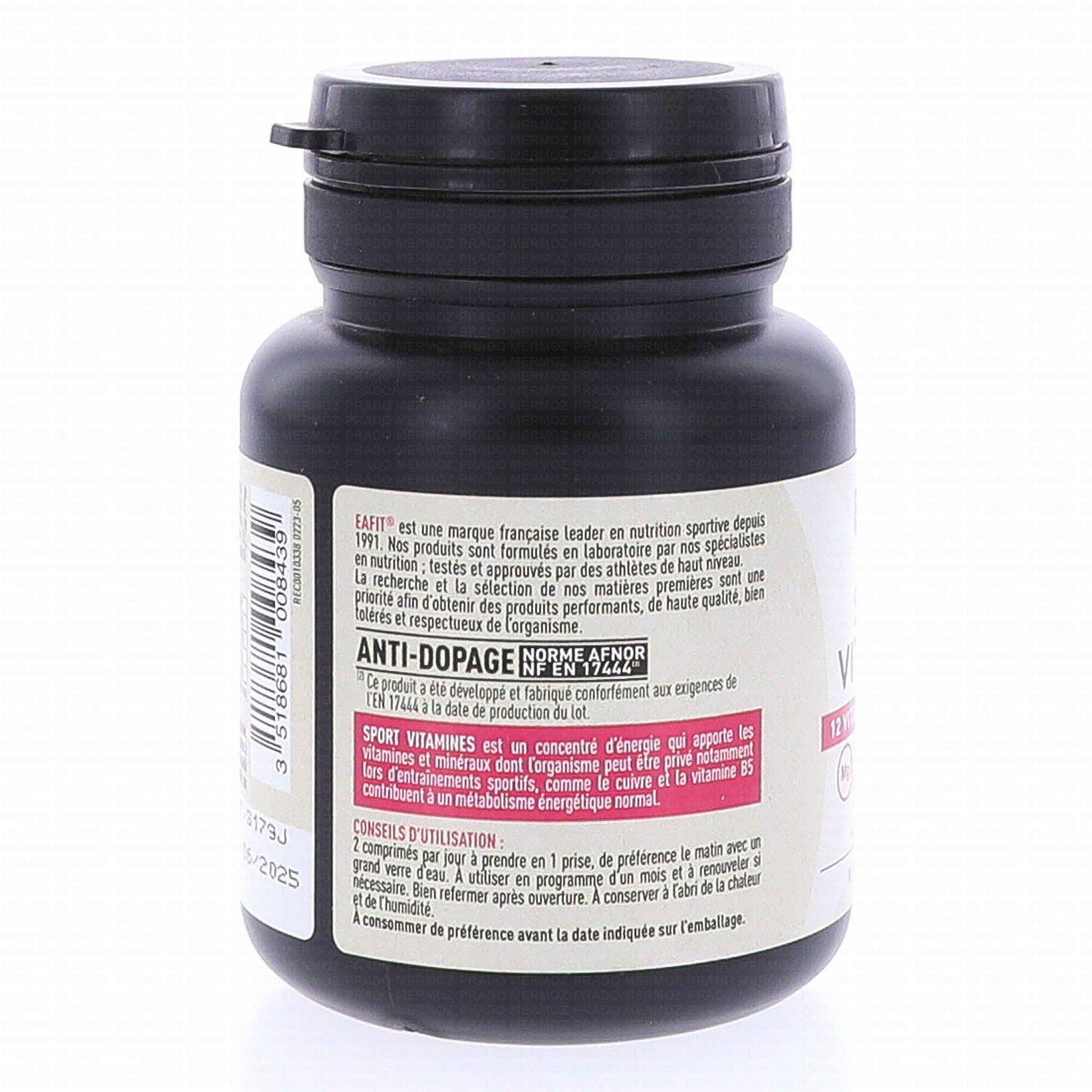 EAFIT Sport vitamines boîte de 60 gélules contient les éléments suivants :