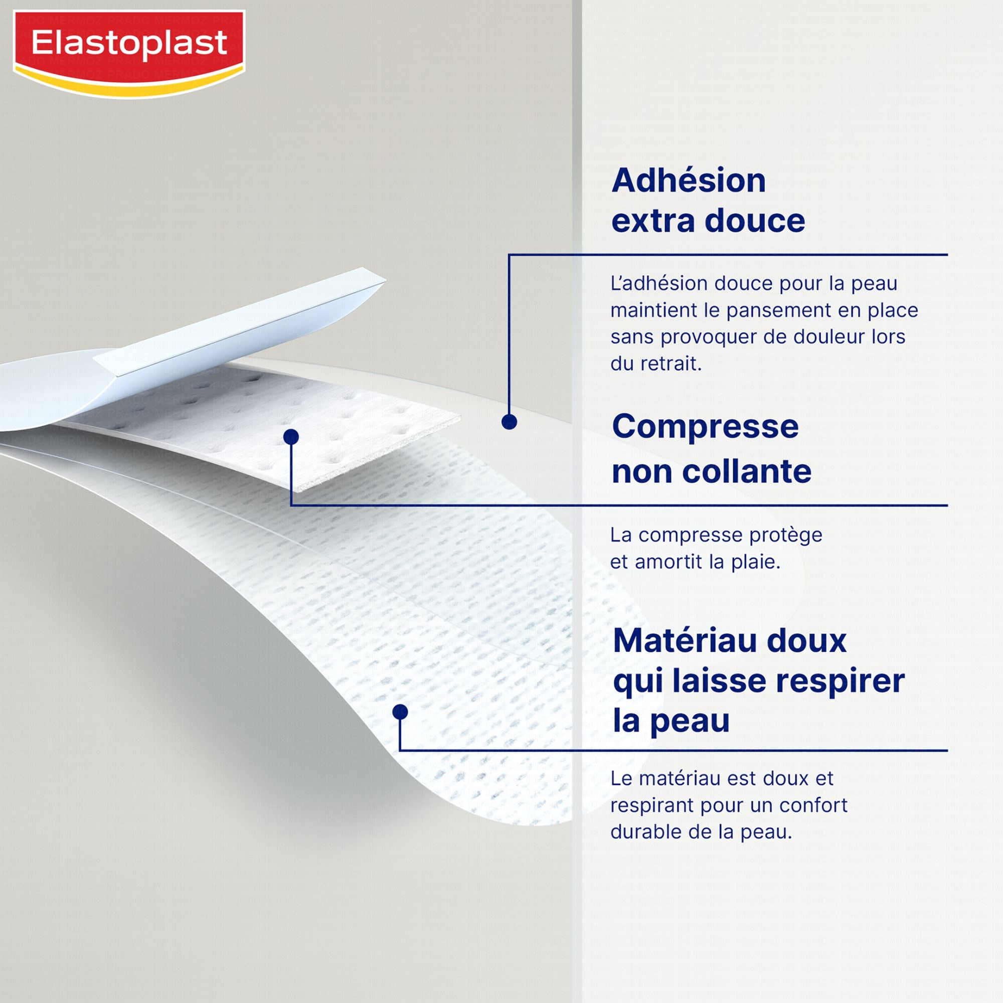 Ces Pansements Enfants Elastoplast protègent les petites blessures du quotidien tout en étant doux pour la peau. Les pansements sont hypoallergéniques et ont une adhérence extra douce qui laisse respirer la peau. Le matériau est flexible et confortable. Le coussinet anti-adhérent protège la plaie et amortit les chocs. Ils restent en place en cas de contact avec l'eau. S'enlève sans douleur. Les couleurs des motifs du pansement sont sans danger pour les enfants.