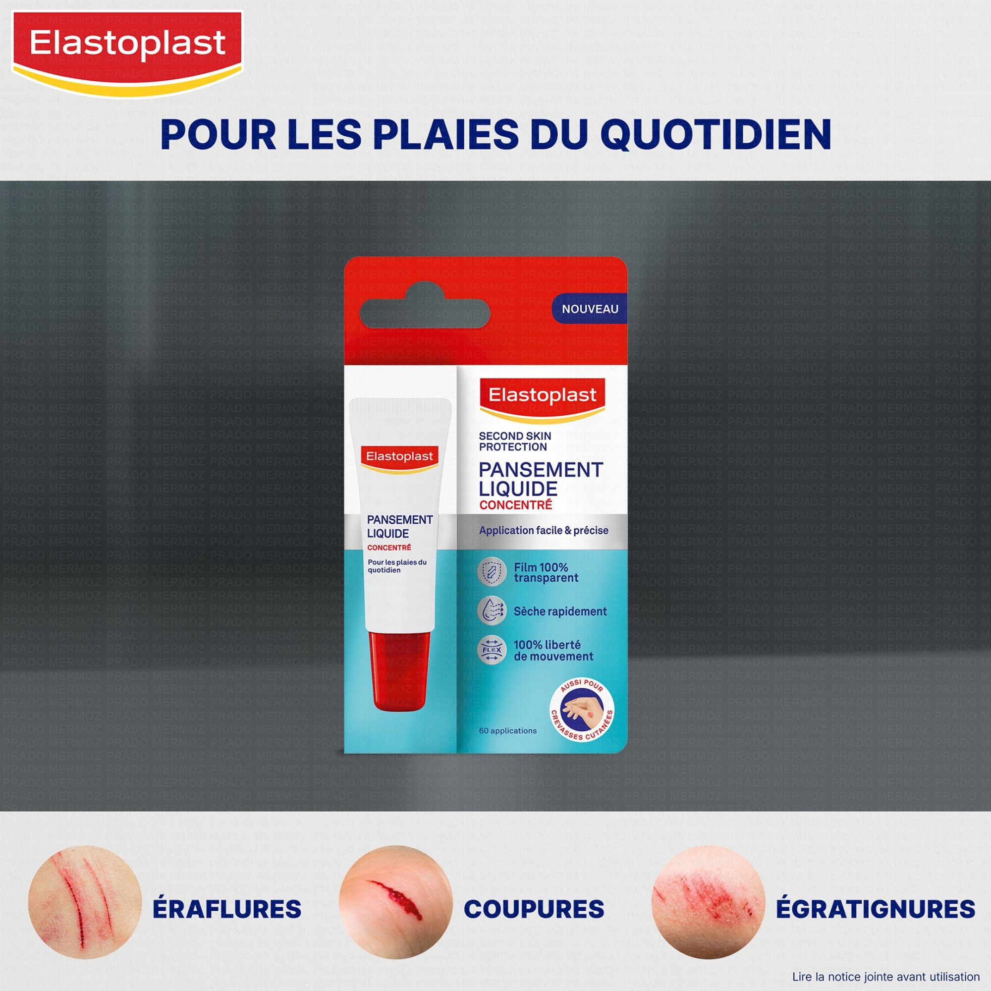 Le Pansement Liquide Concentré de la marque Elastoplast est conçu pour protéger efficacement les petites coupures et éraflures superficielles du quotidien, lorsqu'elles sont propres et sèches.