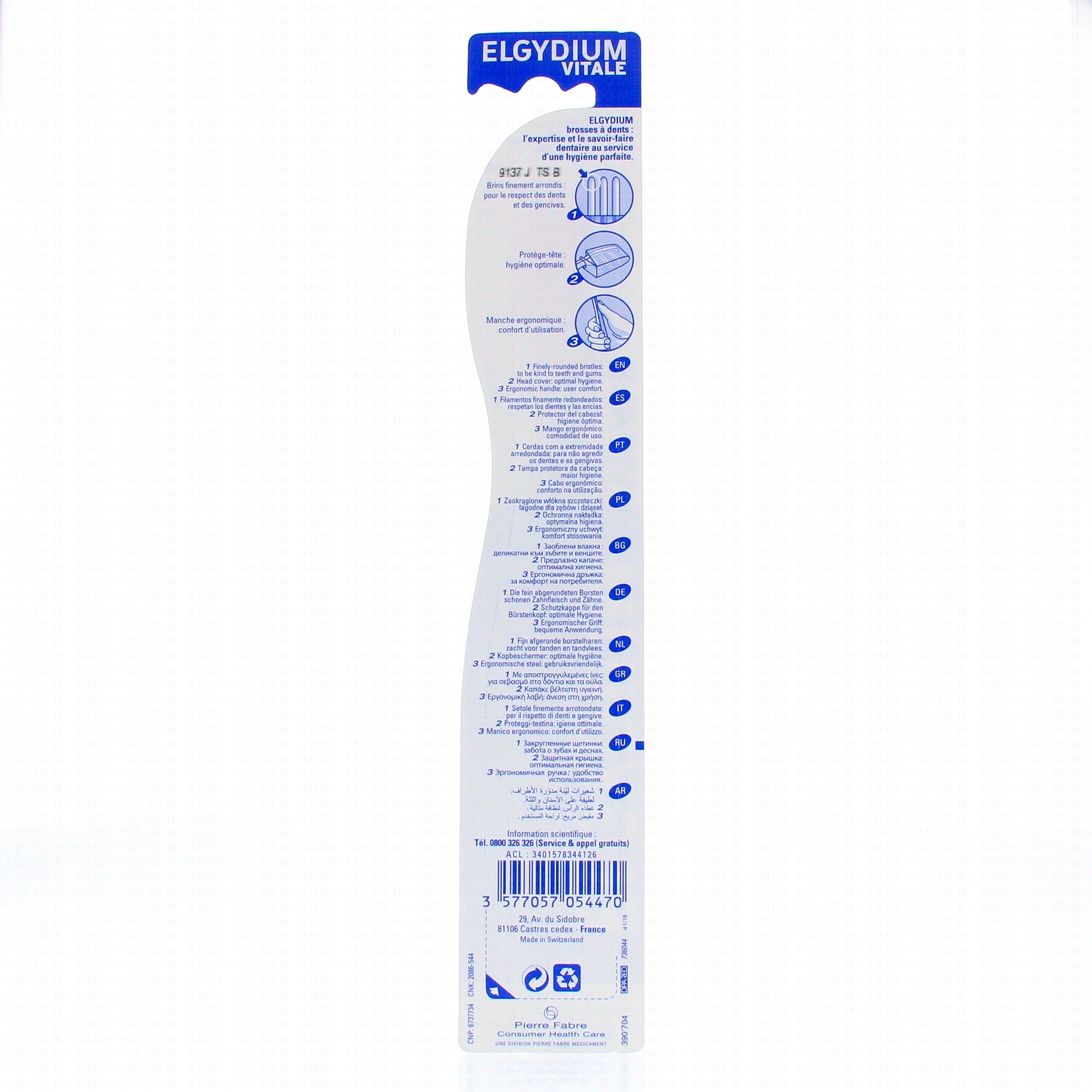 Les brosses à dents Elgydium Vitale Colour sont conçues pour respecter les gencives et les dents, leurs brins bicolores sont en Tynex, au bout arrondi pour une protection de l'émail et de la gencive, leurs manches translucides flexibles sont faciles à manier épousant la morphologie de la main. La brosse a dents Elgydium Classique Medium Vitale Colour est conçue pour l'adulte. Tête étroite garnie de brins bicolores, synthétiques aux extrémités arrondies. Manche translucide, long et incurvé, avec butée de préhension antidérapante. Livrée avec un capuchon de protection. Coloris : assortis.