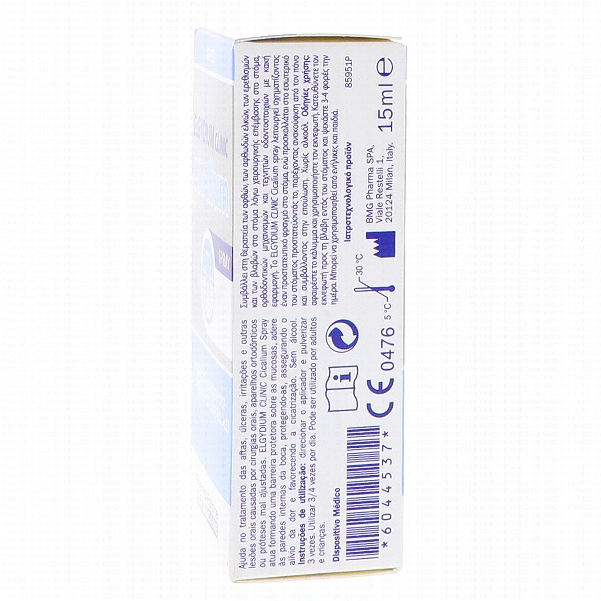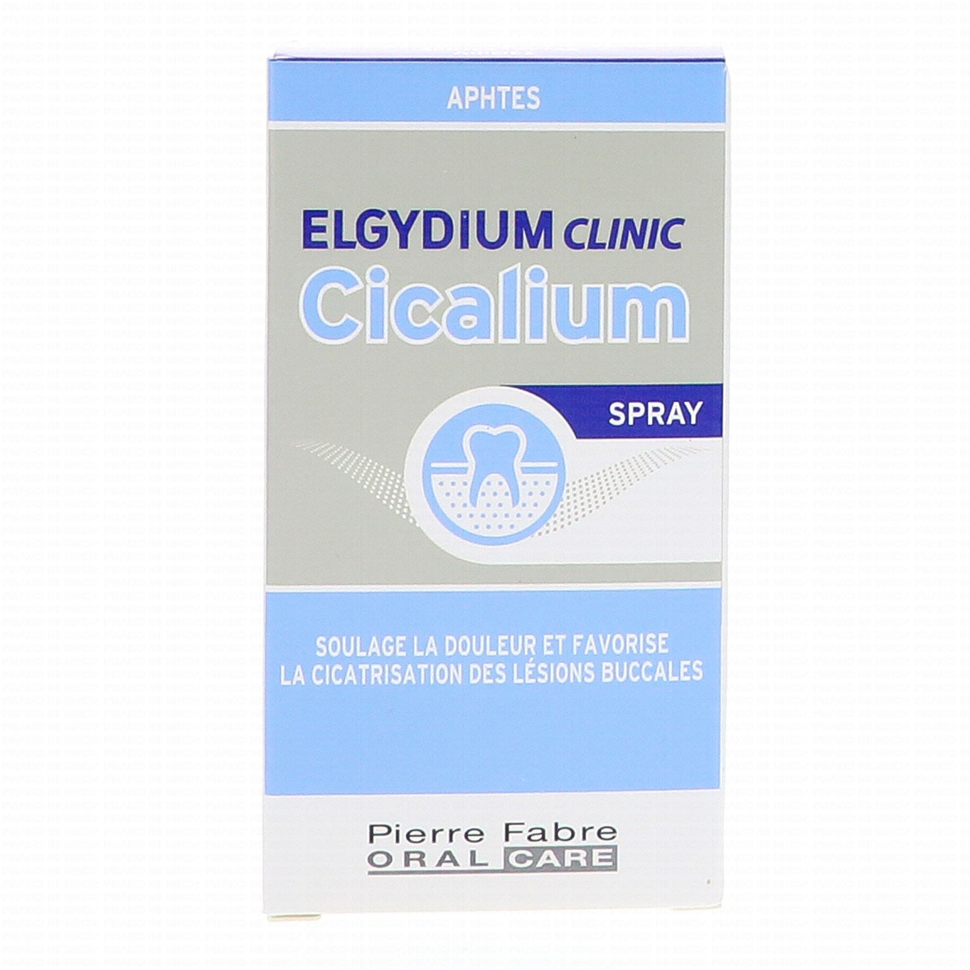 ELGYDIUM CLINIC Cicalium Spray est un nouveau dispositif médical breveté indiqué pour le traitement des aphtes, des lésions ulcéreuses, des irritations et des lésions buccales. Il existe aussi sous forme de Gel. Composé de PVP (polyvinylpyrolidone), de taurine et de zinc, il est facile d'application grâce à un spray multidirectionnel.