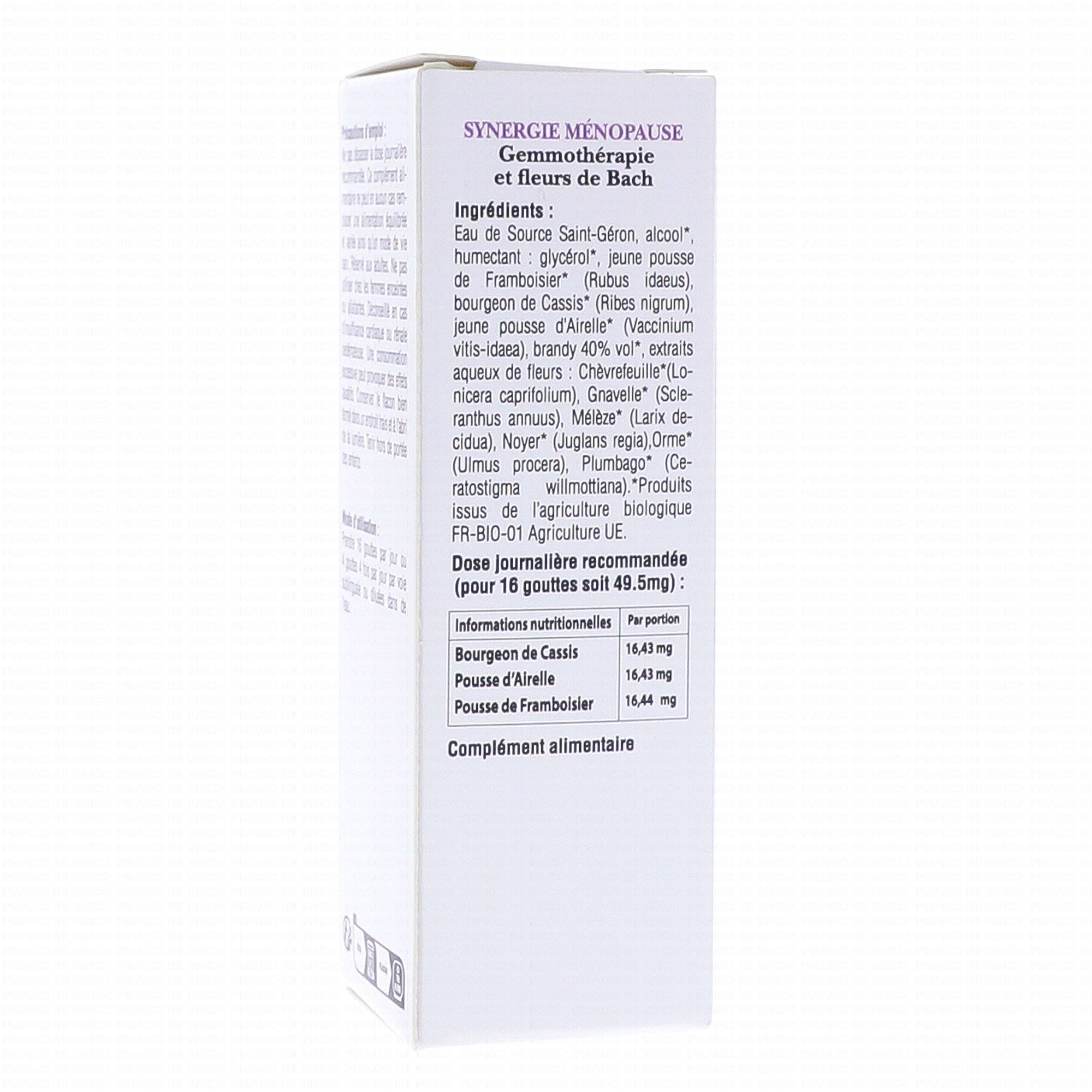 ELIXIRS & CO Fleur de Bach Synergie Ménopause bio 20ml contient les éléments suivants :
