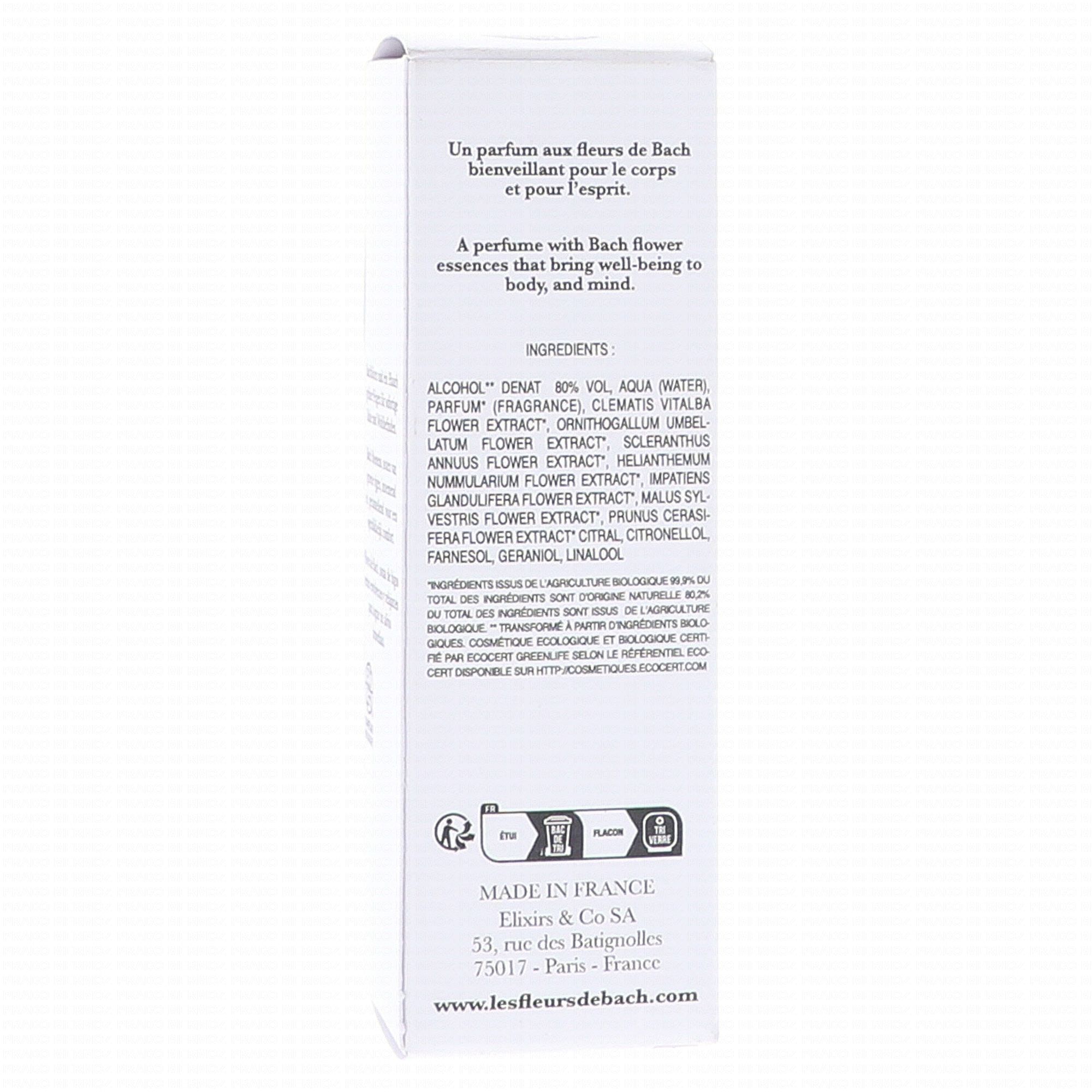 Elixirs & Co Eau d'Élixir Harmonie Aux Fleurs De Bach Eau De Toilette Apaisante 12 ml va vous aider à être disponible et particulièrement attentif au côté positif des événements et des circonstances que la vie nous propose. Elle vous offrira ainsi la possibilité d'avoir une attitude ouverte, sans inhibition, afin de profiter dans l'instant des bienveillances que la vie nous réserve. Les eaux d'élixir sont des eaux de toilette bio qui, au-delà de Parfums, subtils et envoûtants apportent un bien-être physique et mental grâce aux fleurs de Bach.