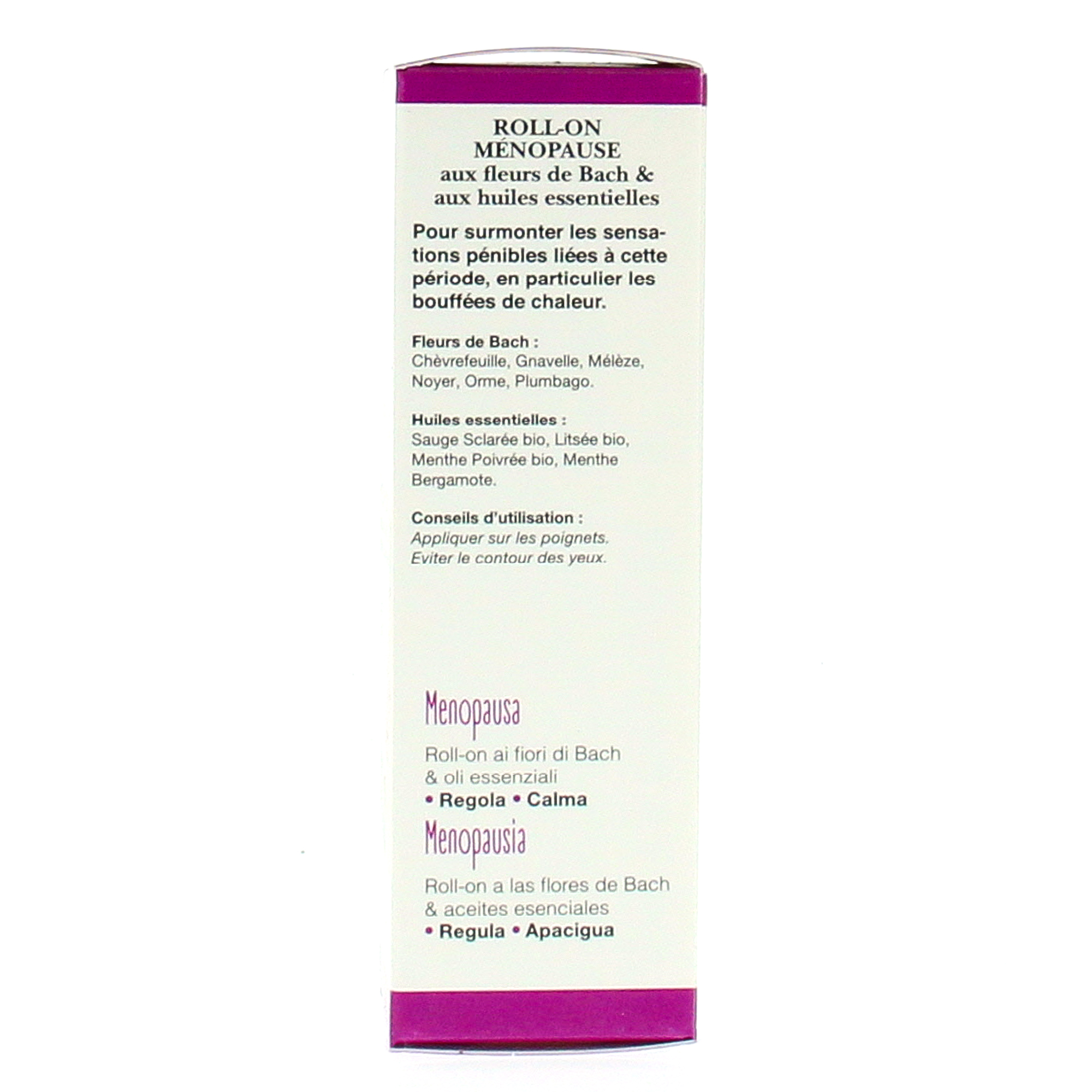 Roll-On aux huiles essentielles et aux fleurs de Bach. Apaise les désagréments de la ménopause.