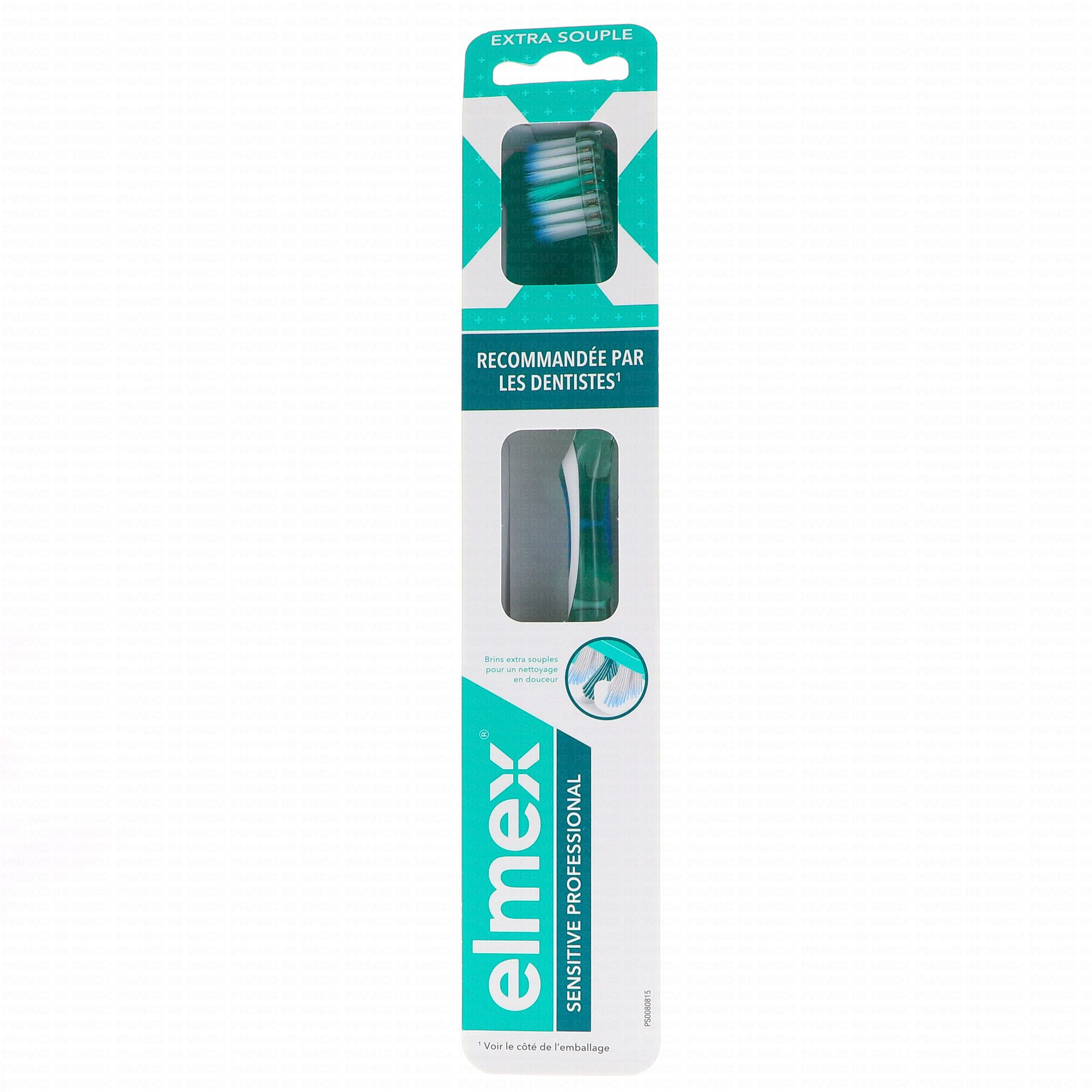 La brosse à dents Elmex souple est spécialement conçue pour les patients ayant des collets dentaires dénudés et des dents sensibles. (ref. 60645). Tête ovale, avec brins extra doux à bouts arrondis blancs dont 2 rangées de brins verts, plus longs alignés en X. Manche ergonomique avec butée de préhension antidérapante. Coloris : blanc et vert. Conditionnement : carte blister.