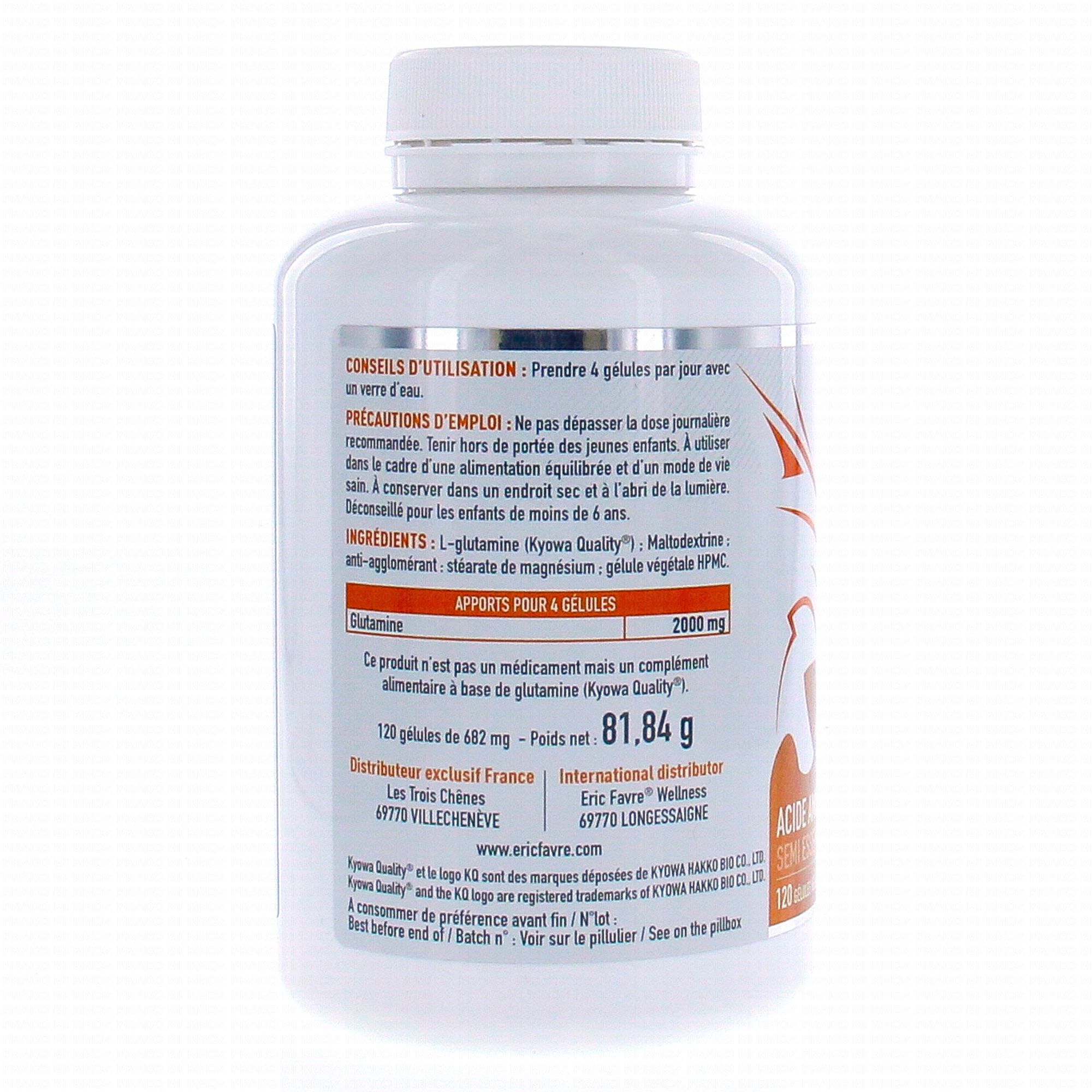 ERIC FAVRE Glutamine 2000mg 120 gélules contient les éléments suivants :