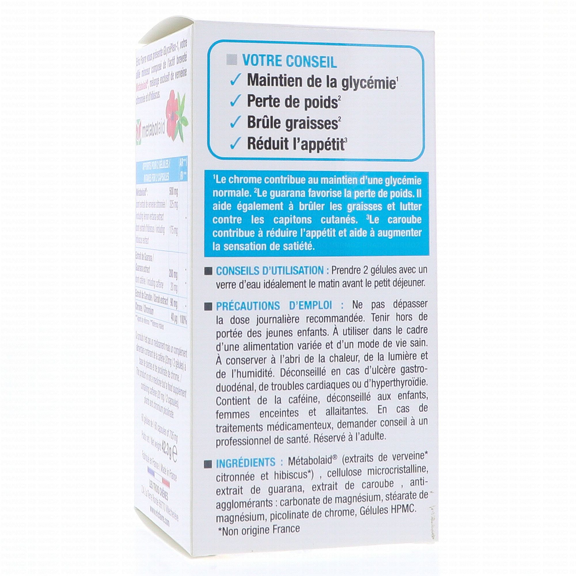 ERIC FAVRE GlycéPlex 1 Brûleur & Satiété X60 gélules contient les éléments suivants :