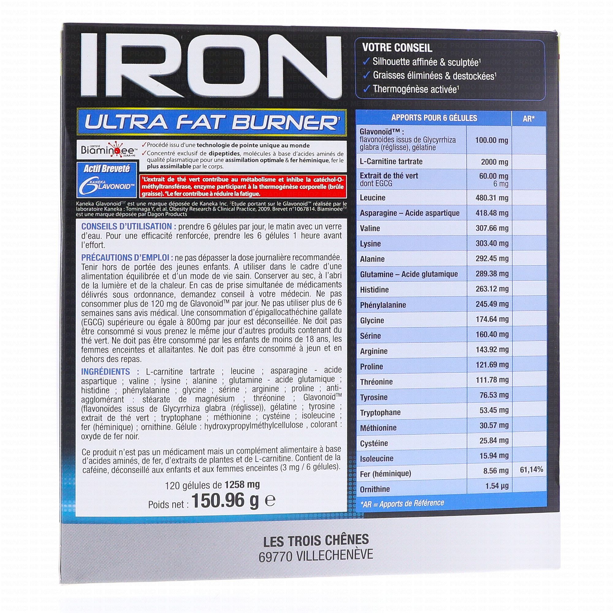Ce lot comprend un Iron Ultra Fat Burner x120 gélules + un gel abdo Slim 150 ml offert.