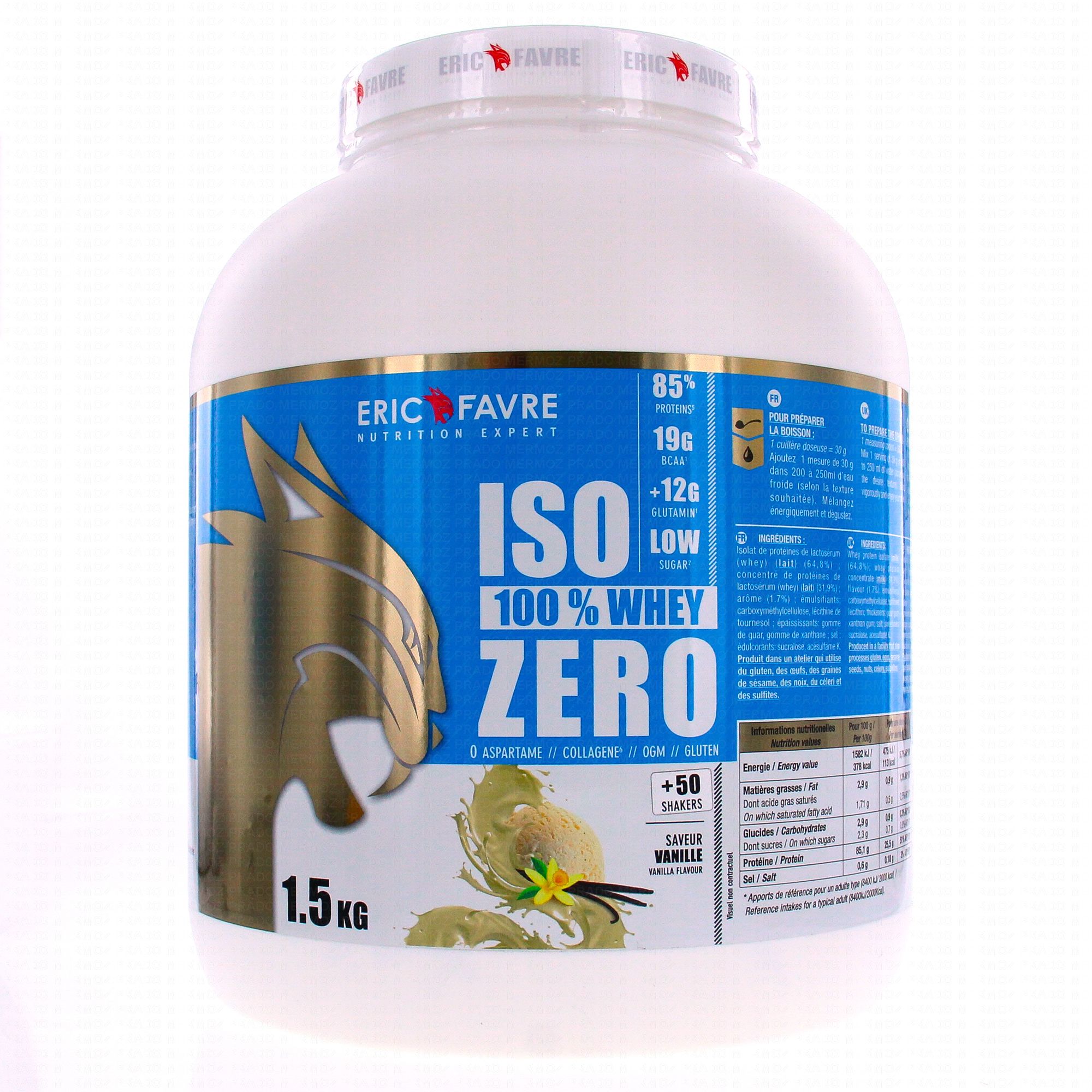 ERIC FAVRE Iso 100% Whey ZERO Vanille 1.5kg contient les éléments suivants :
