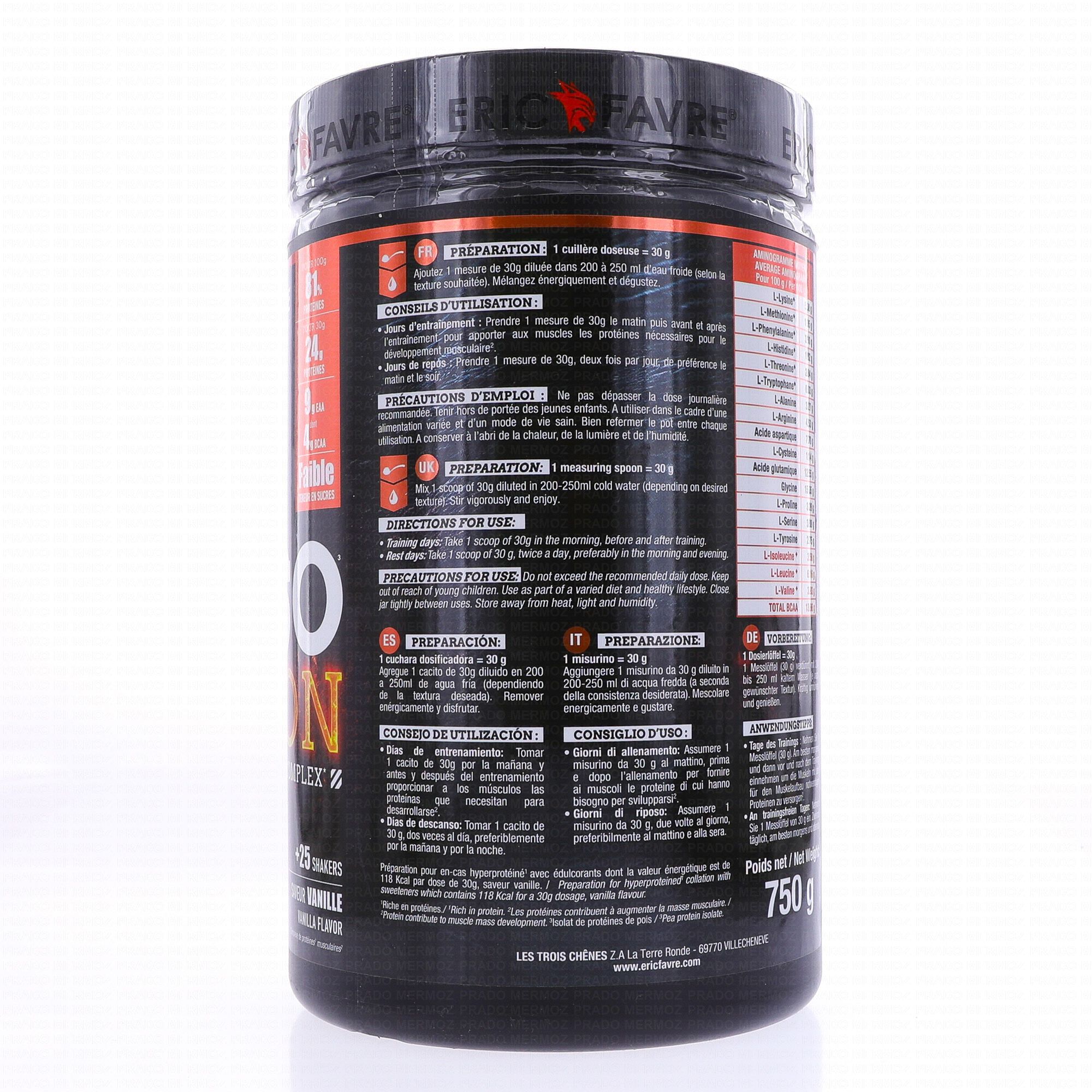 ERIC FAVRE Iso Fusion Saveur Vanille 750g aide au maintien et à l'augmentation de la masse musculaire grâce aux protéines présentes, en complément d'un mode de vie sain.
