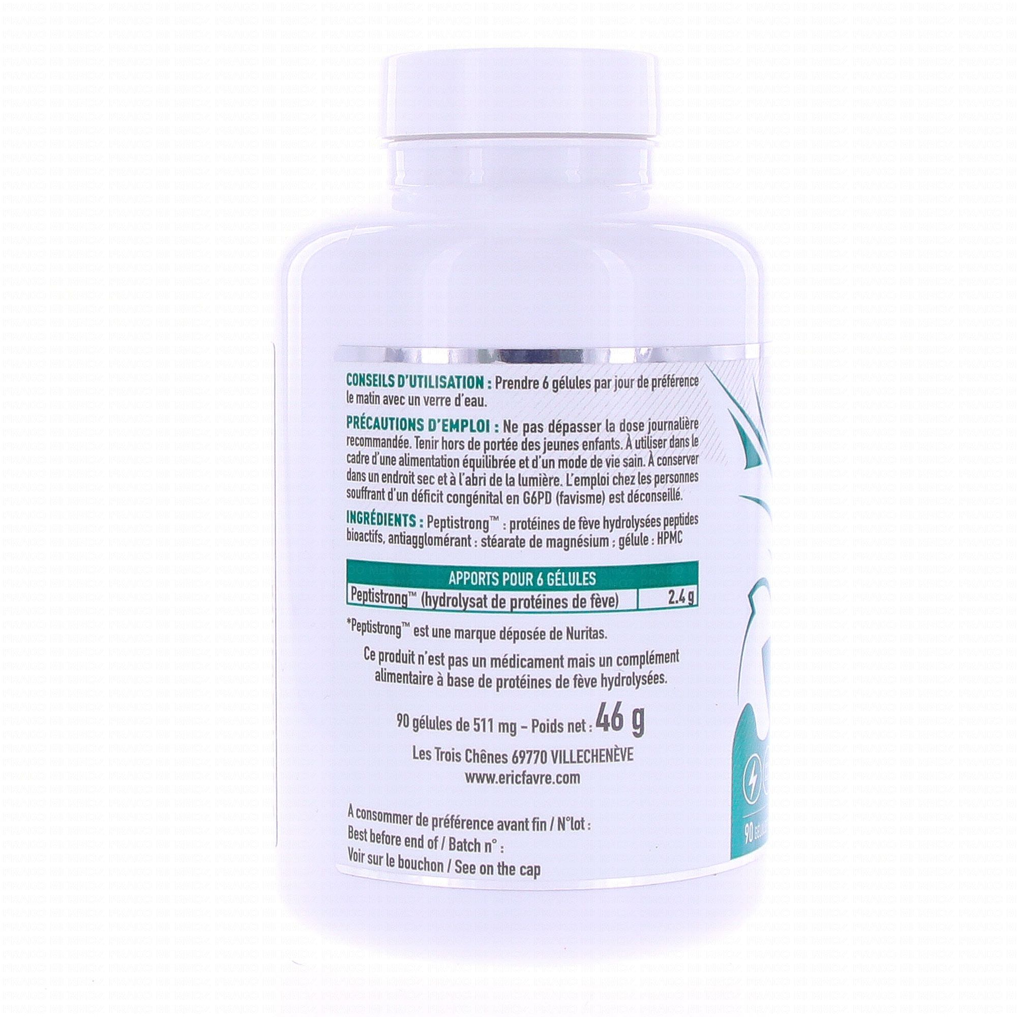 Peptistrong™ : protéines de fève hydrolysées peptides bioactifs, antiagglomérant : stéarate de magnésium ; gélule : hpmc