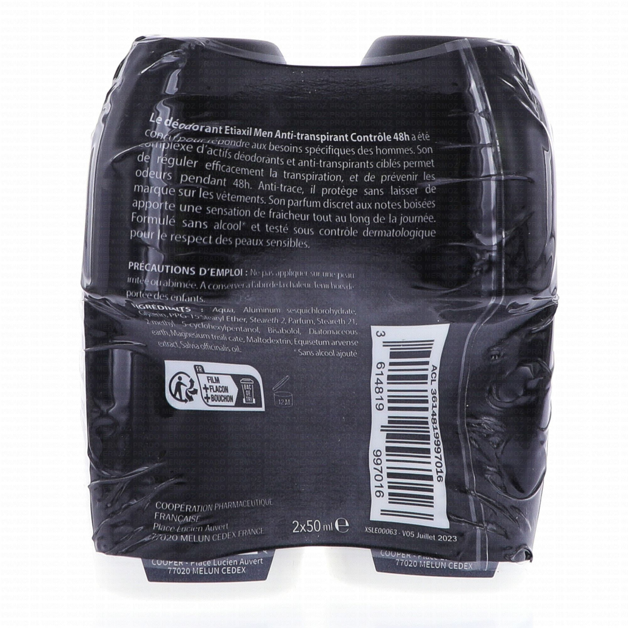 ETIAXIL déodorant men anti-transpirant controle 48h roll-on lot de 2 x 50ml
