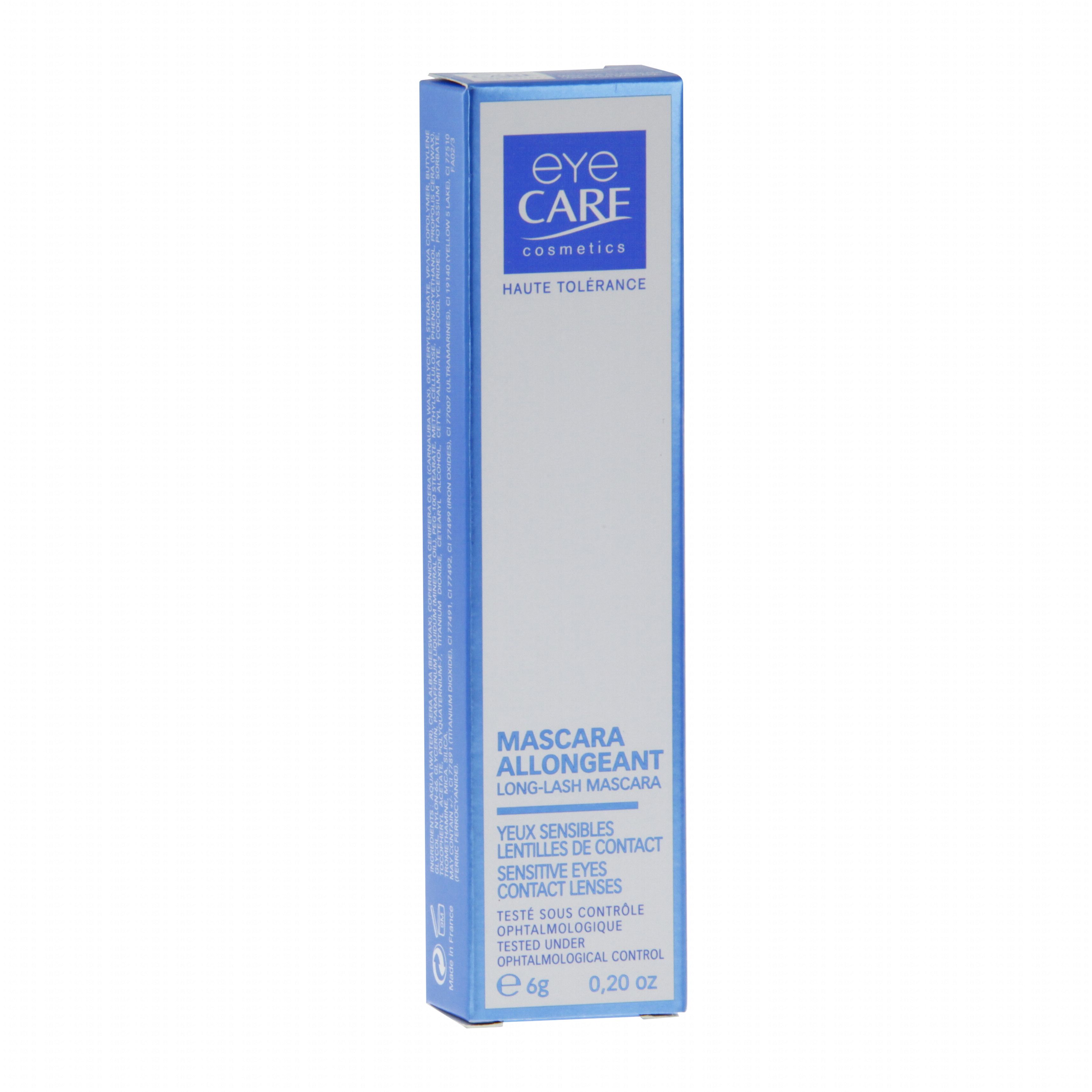 Eye Care Mascara Allongeant est conçu pour allonger les cils et accroître leur volume, tout en respectant les yeux sensibles et porteurs de lentilles de contact. Il est disponible en 4 teintes : Brun foncé, Noir profond, Bleu marine, Vert amazone. Formule onctueuse et douce. Haute tolérance, sans paraben, sans chrome.