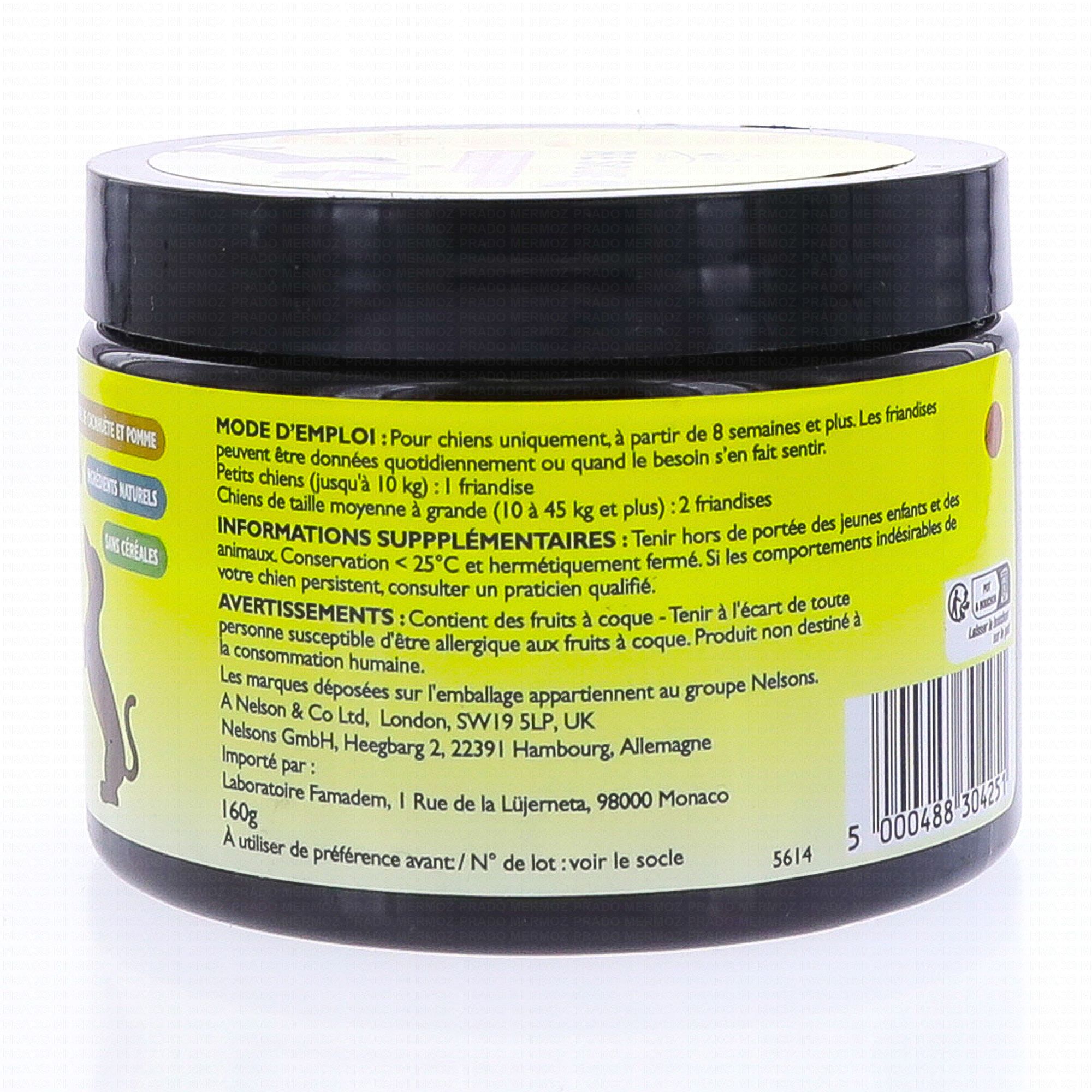 Formulées à base d'ingrédients naturels, et sans céréales, les friandises Rescue favorise la détente, l'apaisement et l'équilibre émotionnel de votre chiens grâce à l'association de camomille, passiflore, valériane et fleurs de bach original. Parfait pour apaiser votre compagnon à 4 pattes durant les périodes de stress, comme les voyages, les lieux bruyants, les orages, les visites chez le vétérinaires ou toiletteur, les séparations ou toutes autres situations pouvant perturber son équilibre émotionnel.