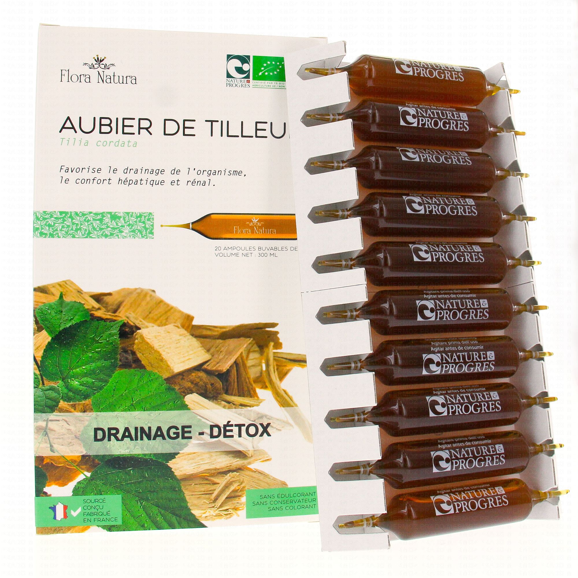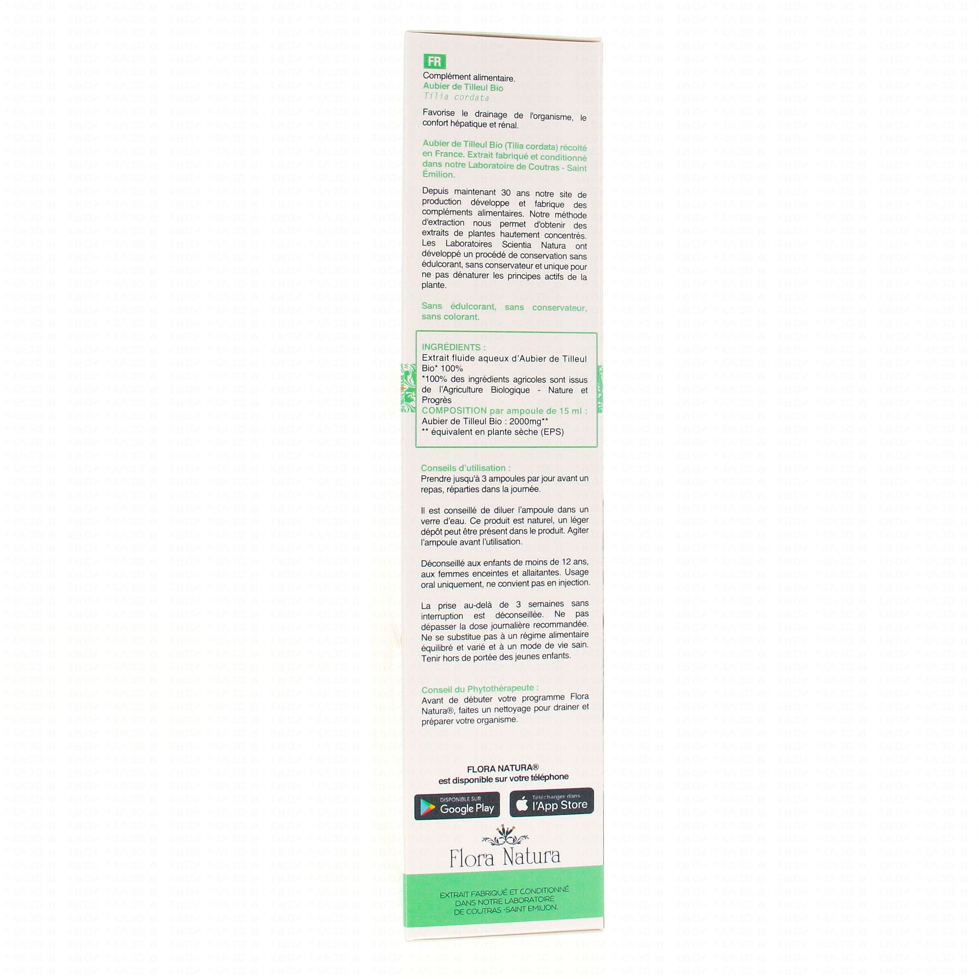 FLORA NATURA Aubier de Tilleul Bio 20 Ampoules de 15ml est un complément alimentaire qui contribue à soutenir les fonctions excrétrices du rein et à soutenir la fonction hépatique.