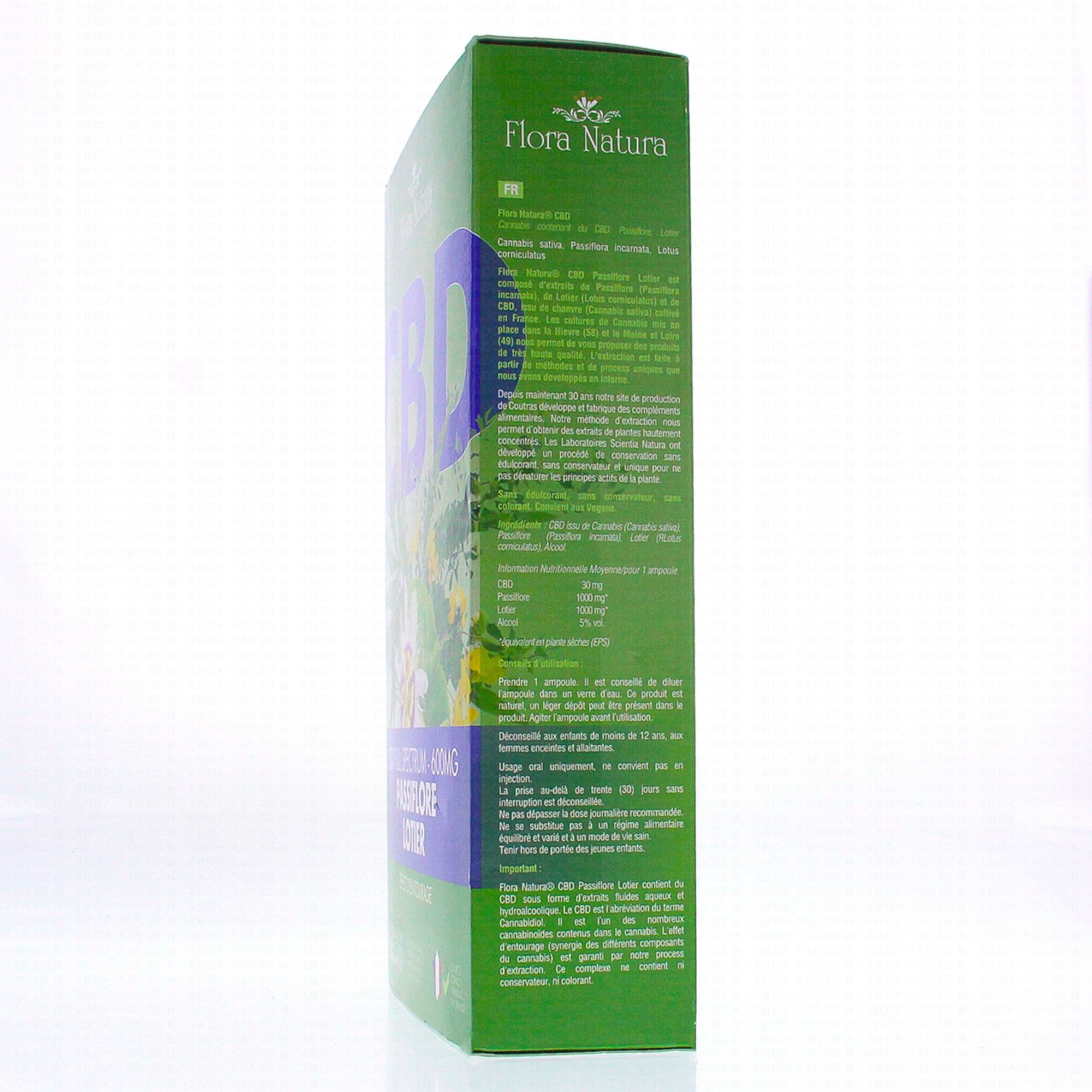 FLORA NATURA CBD full spectre 600mg passiflore lotier x20 ampoules 15ml
