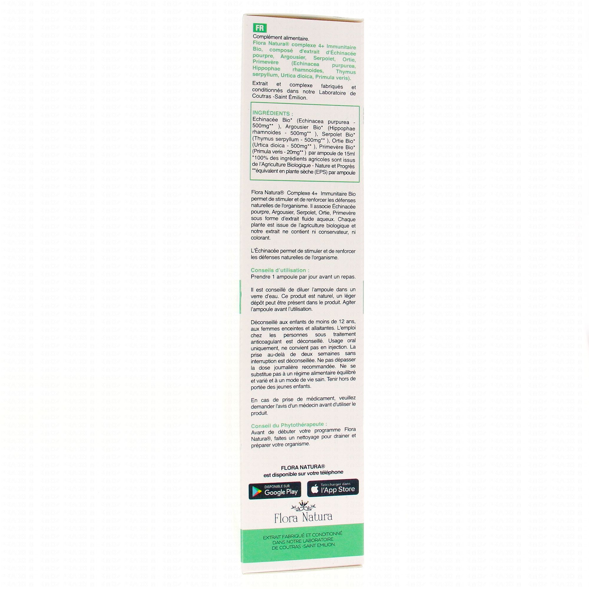 FLORA NATURA Complexe 4+ - Immunitaire Bio 20 Ampoules de 15ml