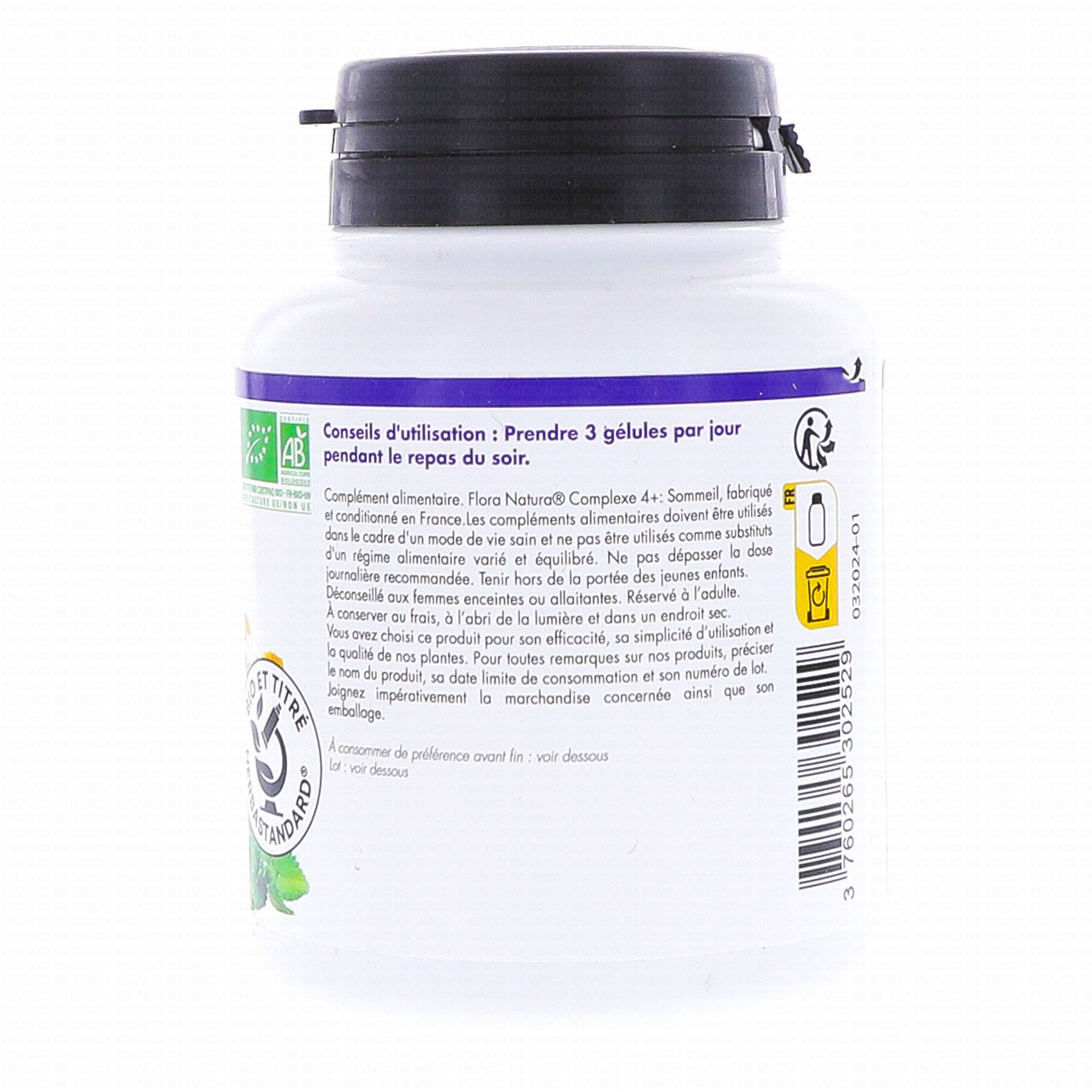 FLORA NATURA Complexe 4+ - Sommeil bio x120 gélules contient les éléments suivants :