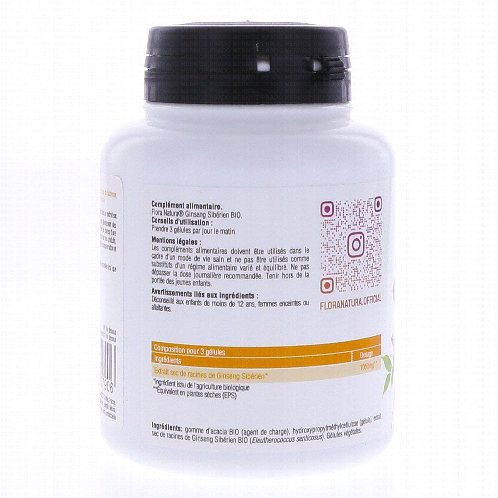 FLORA NATURA Ginseng Sibérien Bio 120 gélules contient les éléments suivants :