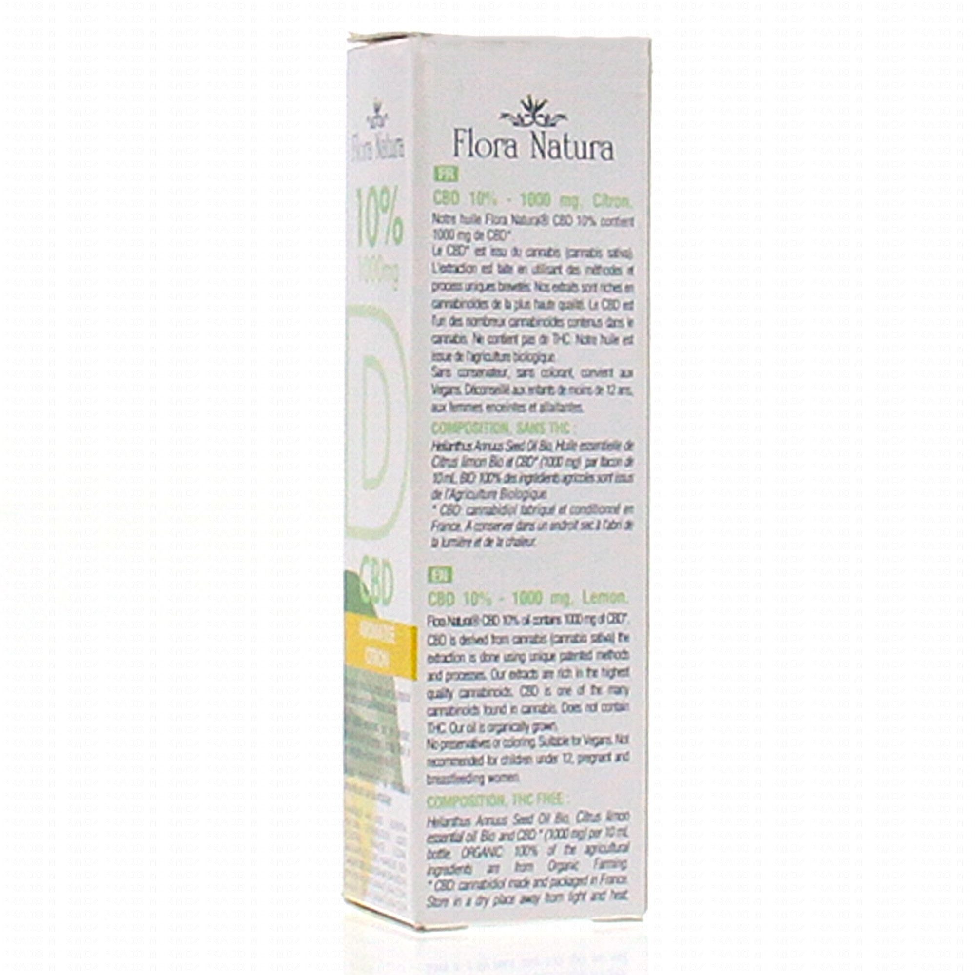 FLORA NATURA Huile de CBD 10% aromatisé citron - contient 1000mg de CBD, qui est l'un des nombreux cannabinoïdes contenus dans le cannabis.