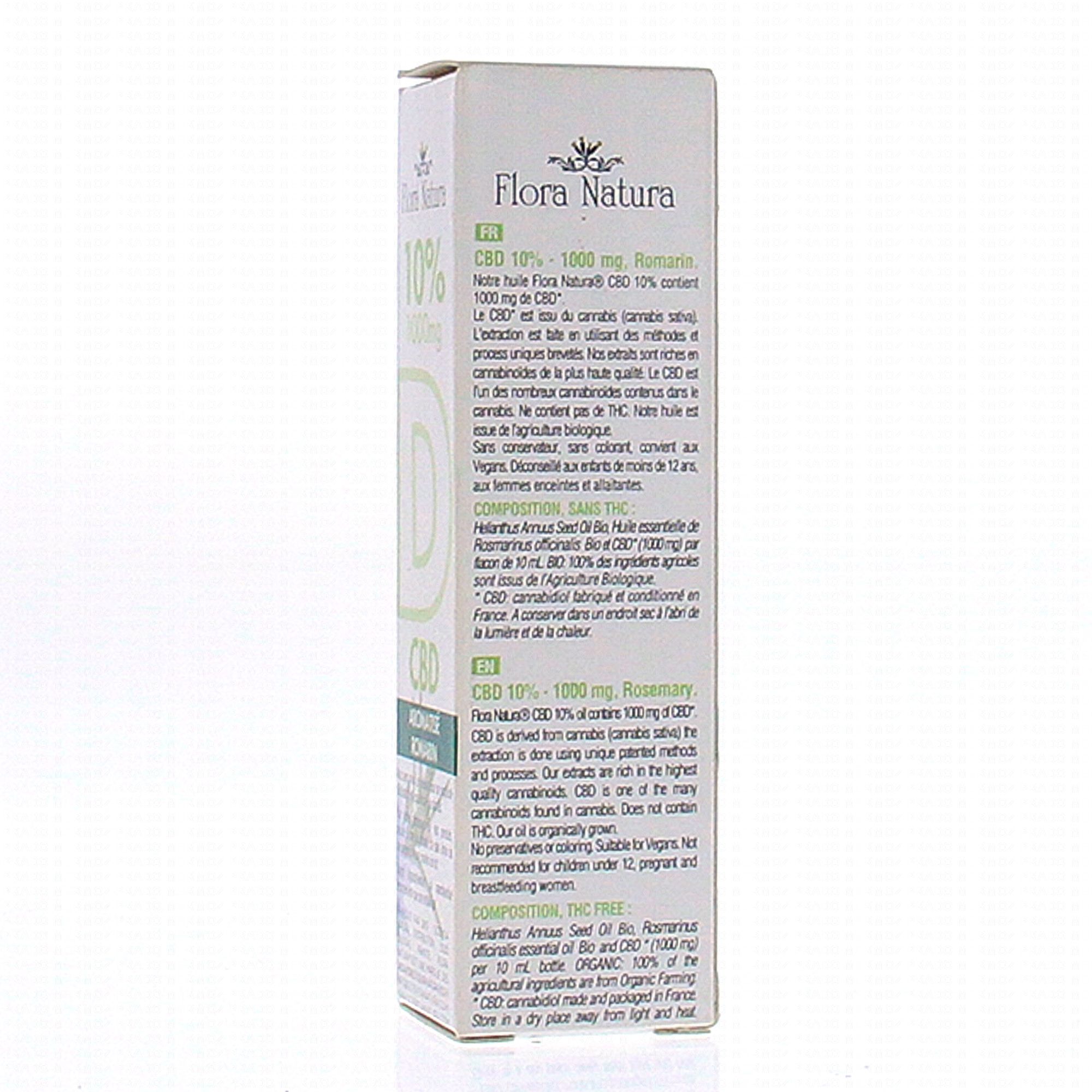FLORA NATURA Huile de CBD 10% aromatisé romarin - contient 1000mg de CBD, qui est l'un des nombreux cannabinoïdes contenus dans le cannabis.