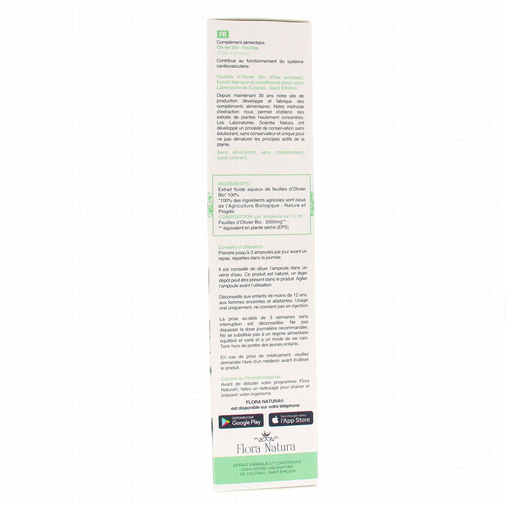FLORA NATURA Olivier Bio 20 Ampoules 15ml contient les éléments suivants :
