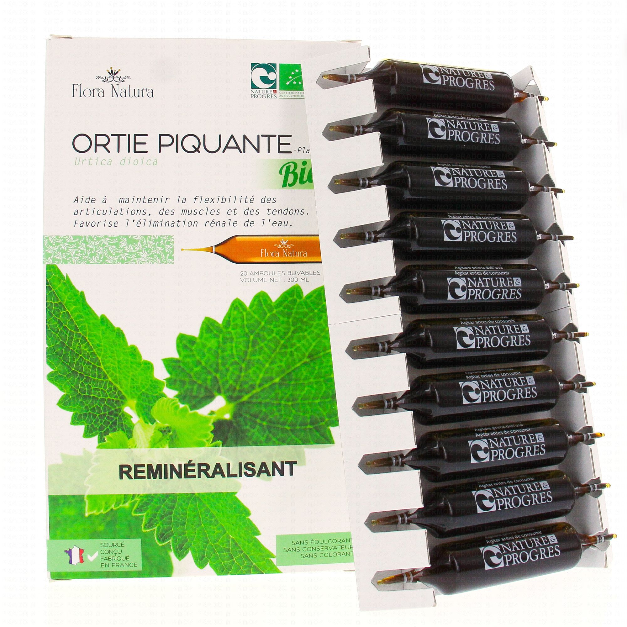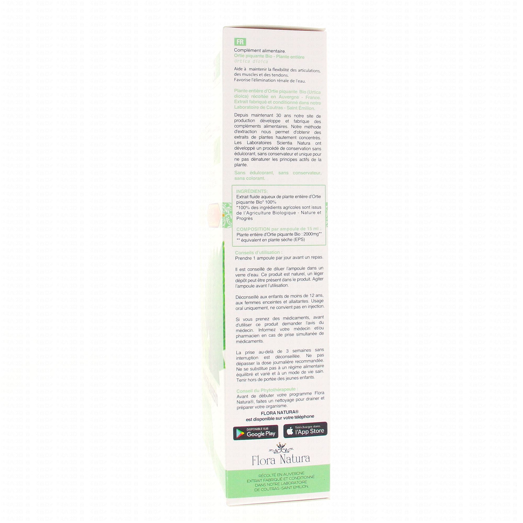 FLORA NATURA Ortie Piquante Bio 20 Ampoule de 15ml contient les éléments suivants: