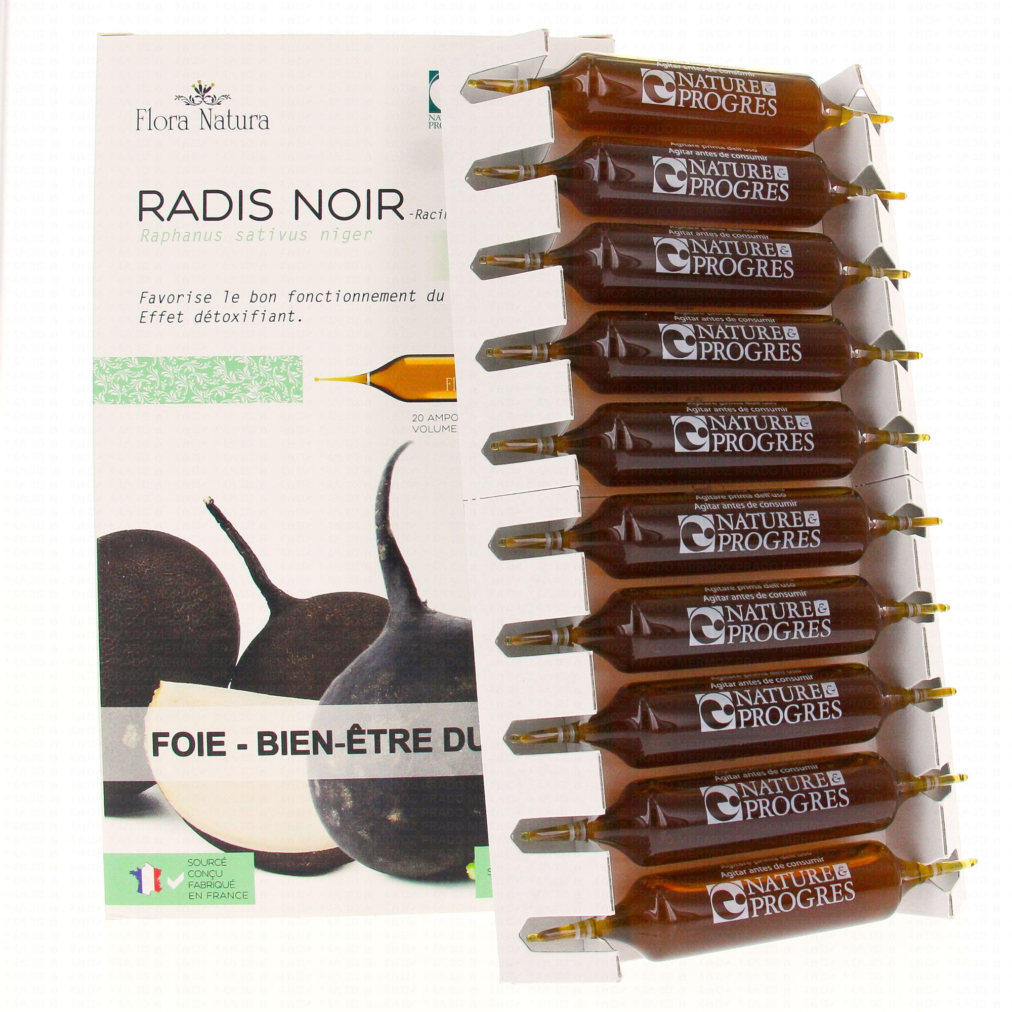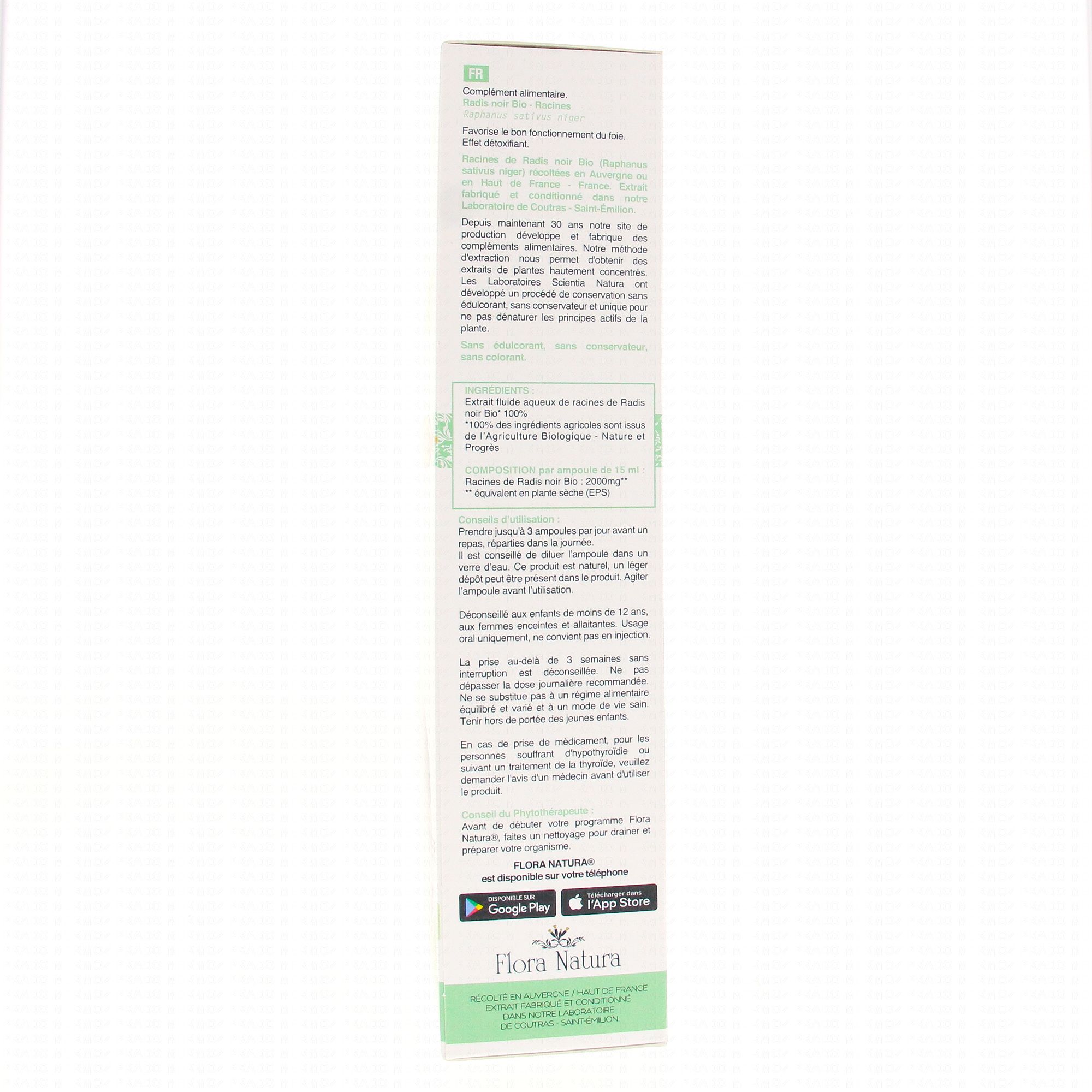 FLORA NATURA Radis Noir Bio 20 Ampoules de 15ml contient les éléments suivants :