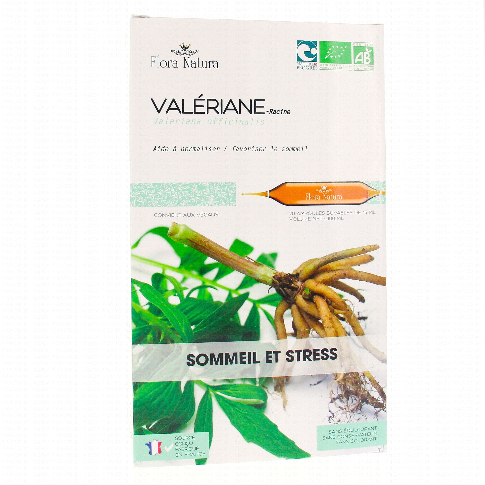 FLORA NATURA Valériane Bio 20 Ampoules de 15ml est un complément alimentaire qui joue un rôle dans la relaxation et qui favorise un sommeil de qualité grâce à la présence de Valériane.