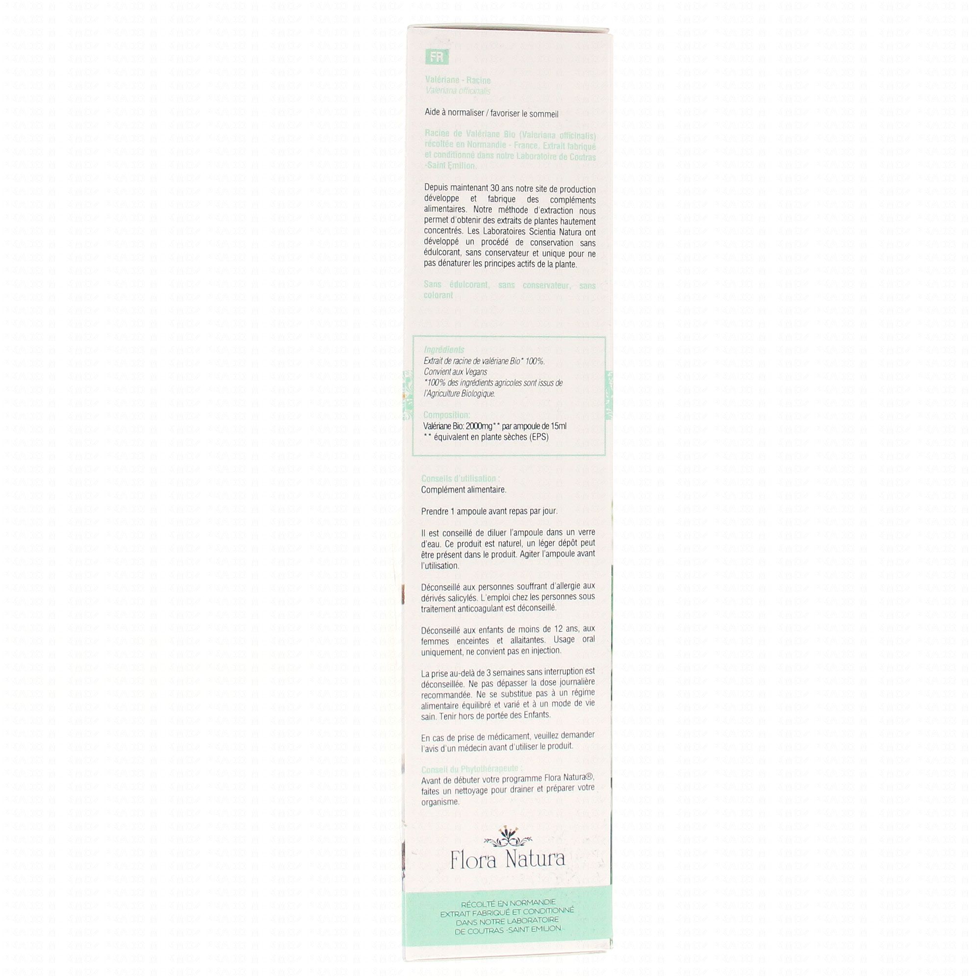 FLORA NATURA Valériane Bio 20 Ampoules de 15ml contient les éléments suivants :