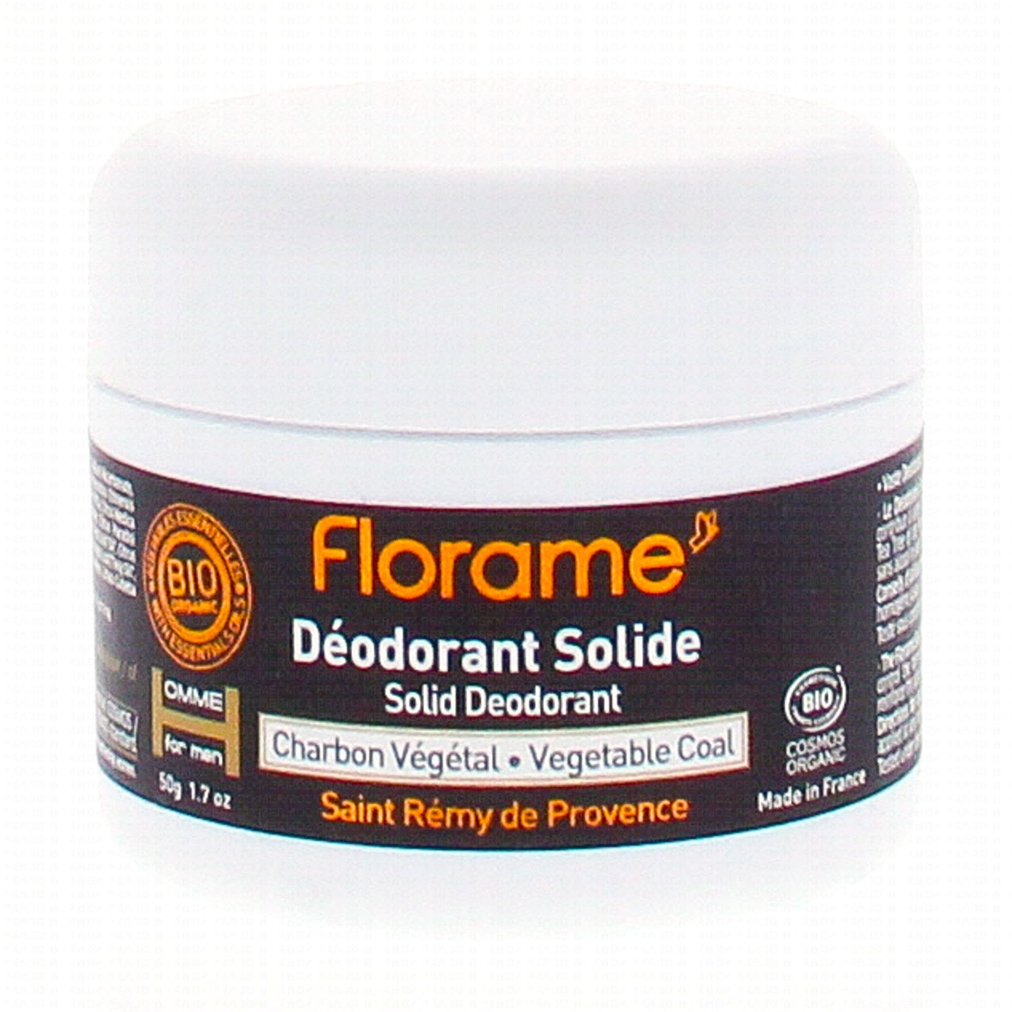 Florame déodorant solide bio pour hommes au charbon végétal.