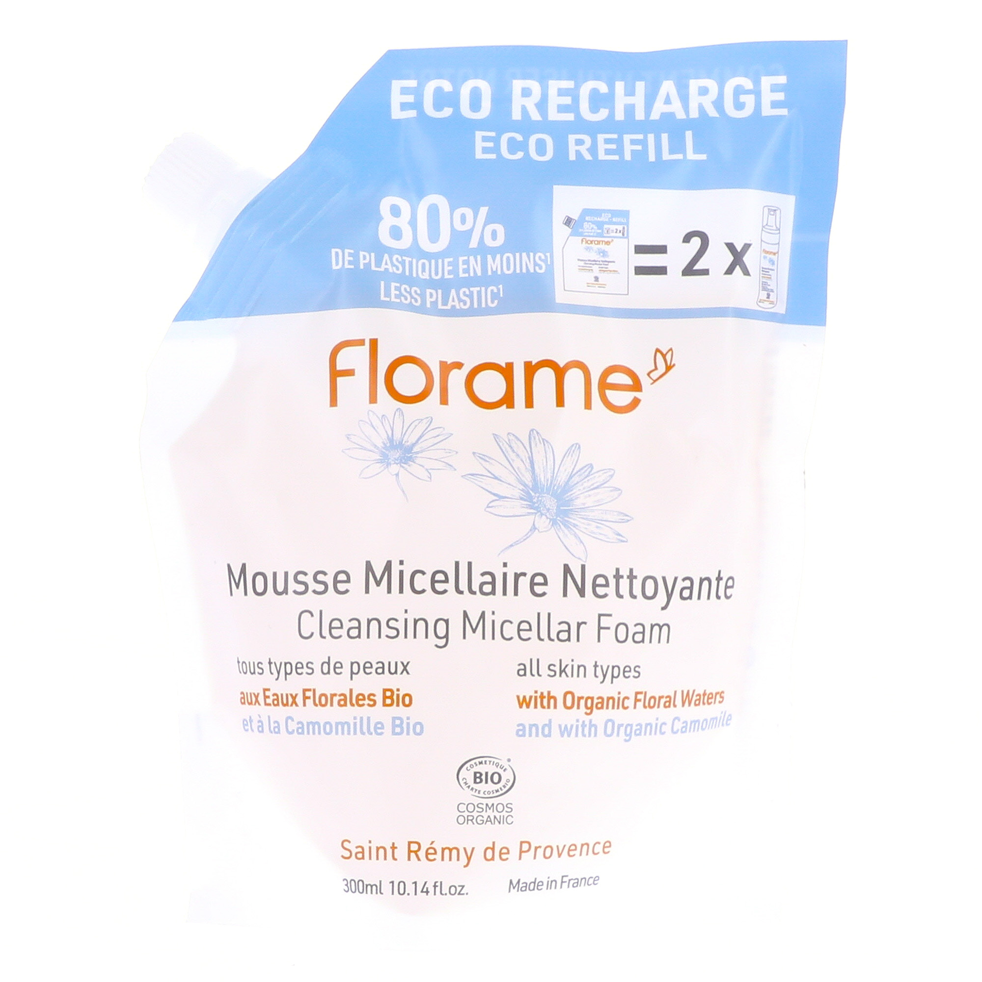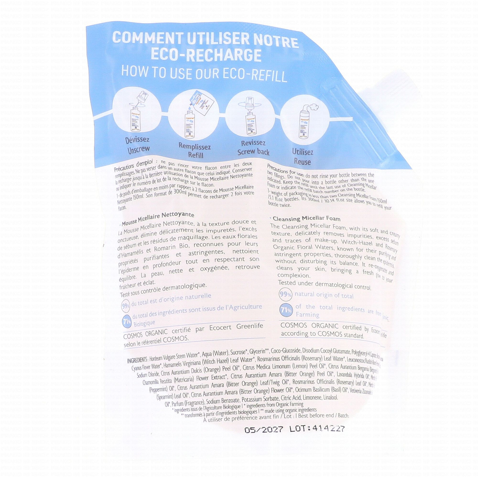 FLORAME Eaux florales bio - Mousse micellaire nettoyante bio eco recharge 300ml
