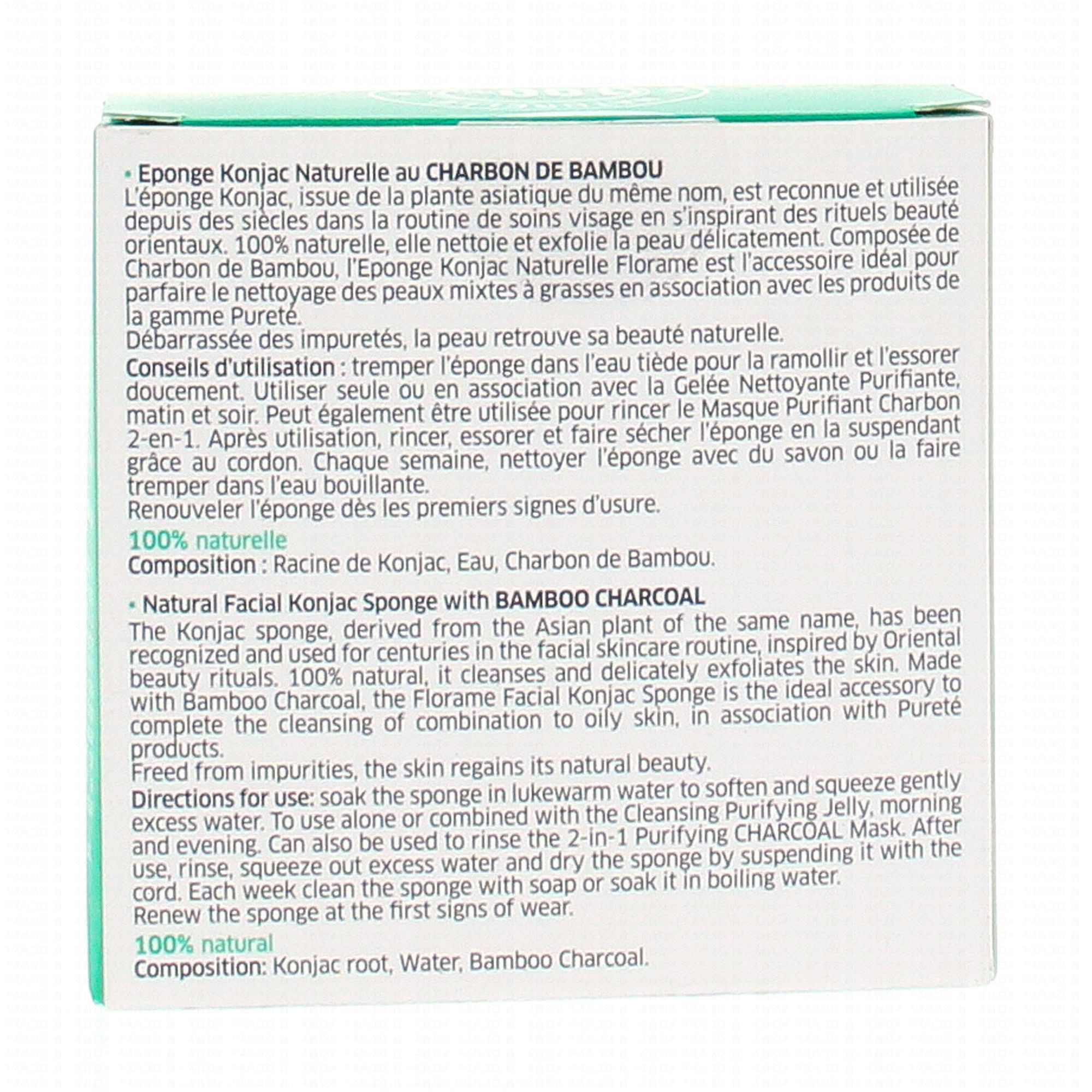 Florame pureté éponge konjac naturelle au charbon Bio nettoie et exfolie la peau pour mieux prévenir de l'apparition des imperfections.