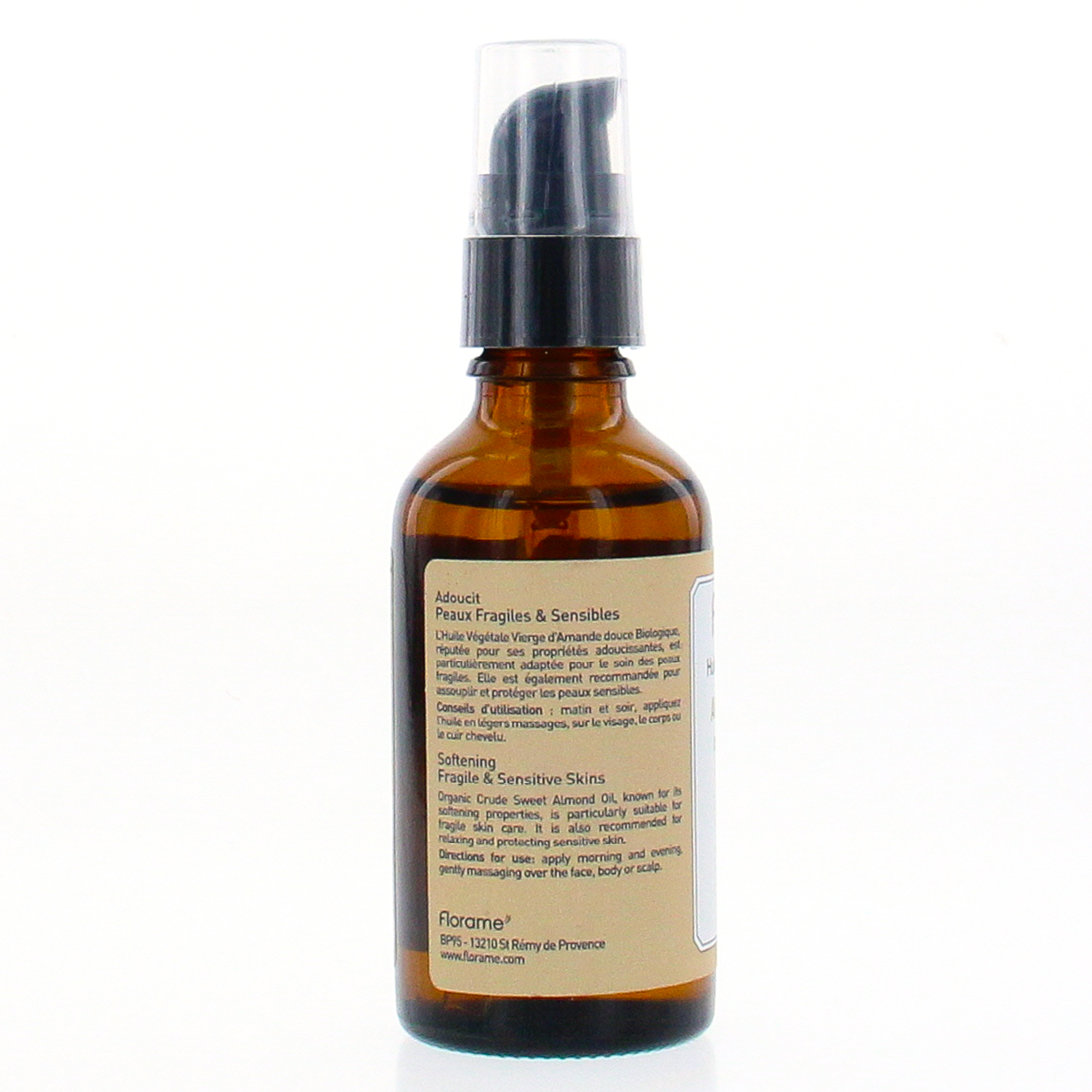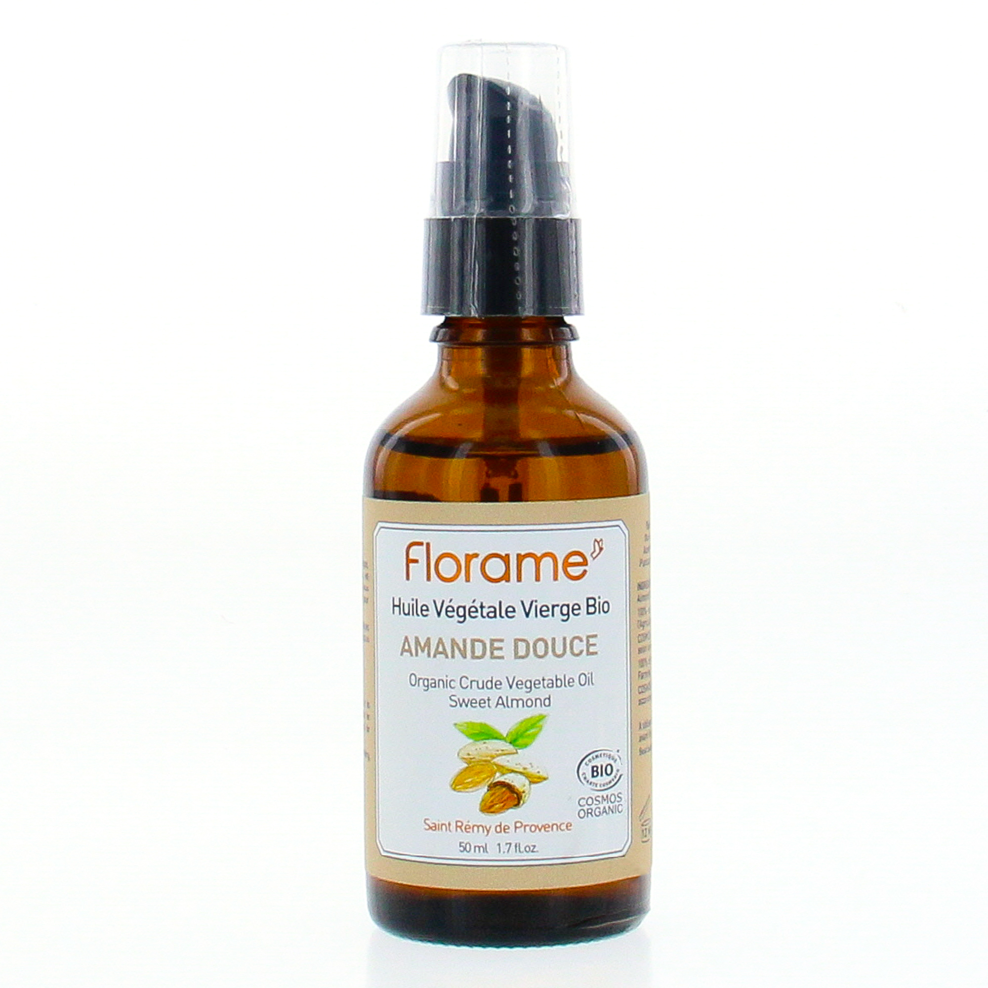 FLORAME Huile végétale vierge bio amande douce flacon pompe 50ml