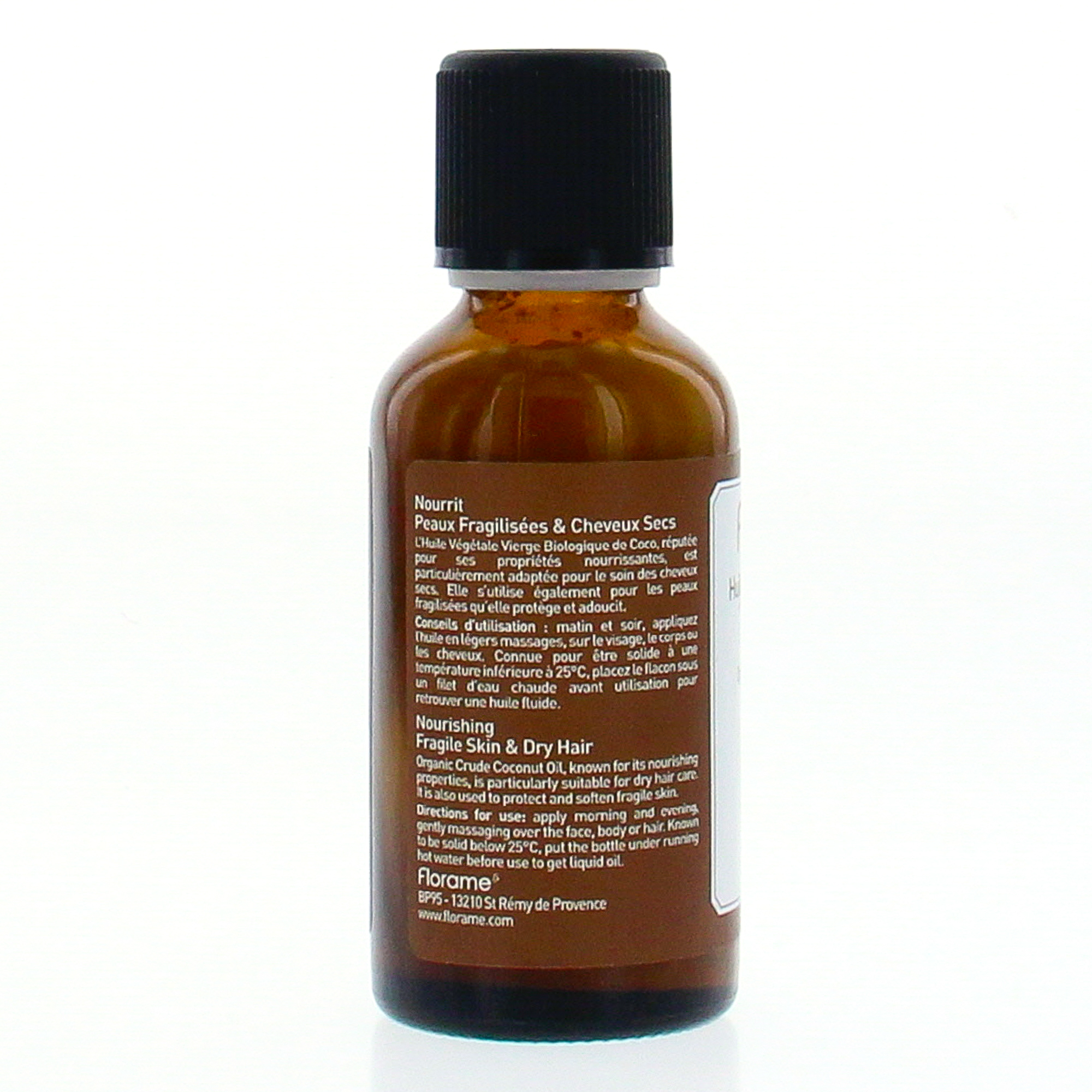 FLORAME Huile végétale vierge bio de coco flacon 50ml