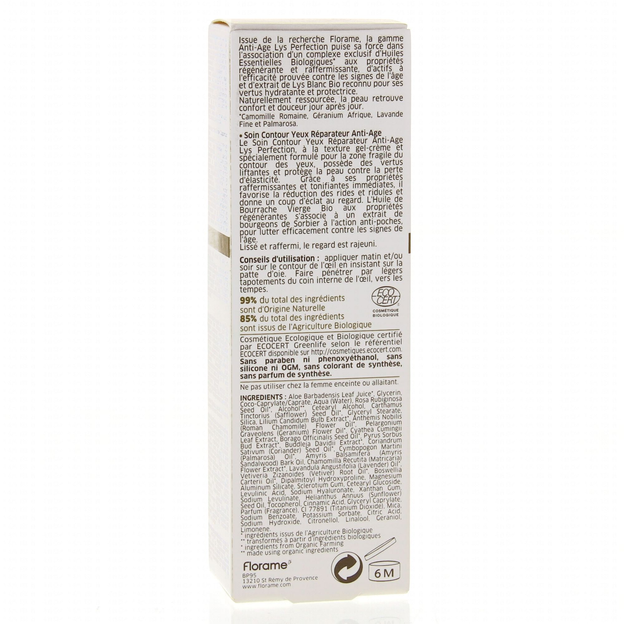 FLORAME Lys-Perfection soin contour yeux réparateur anti-âge tube 15ml