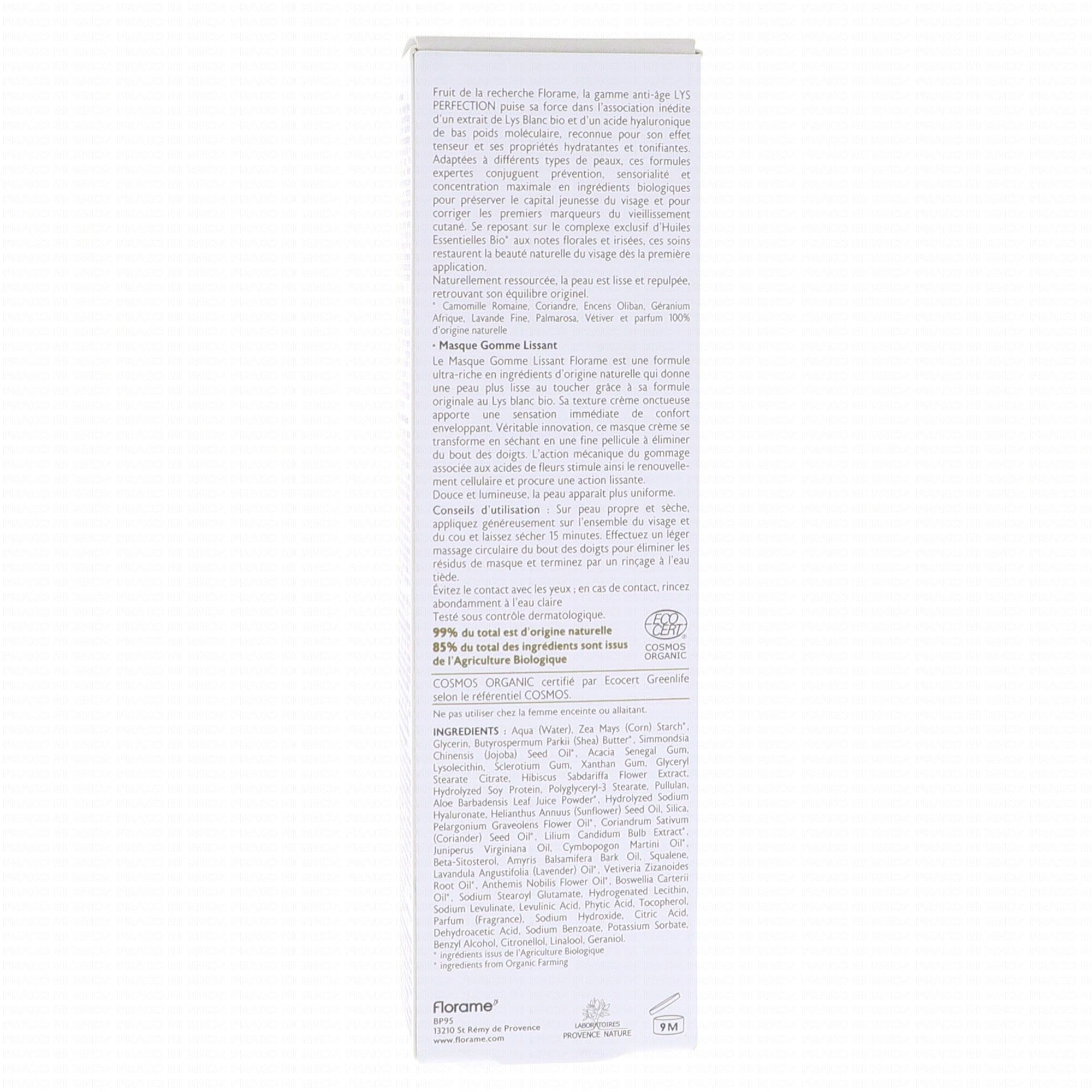 Le Masque Gomme Lissant Florame est une formule ultra-riche en ingrédients d'origine naturelle qui donne une peau plus lisse au toucher grâce à sa formule originale au Lys blanc bio