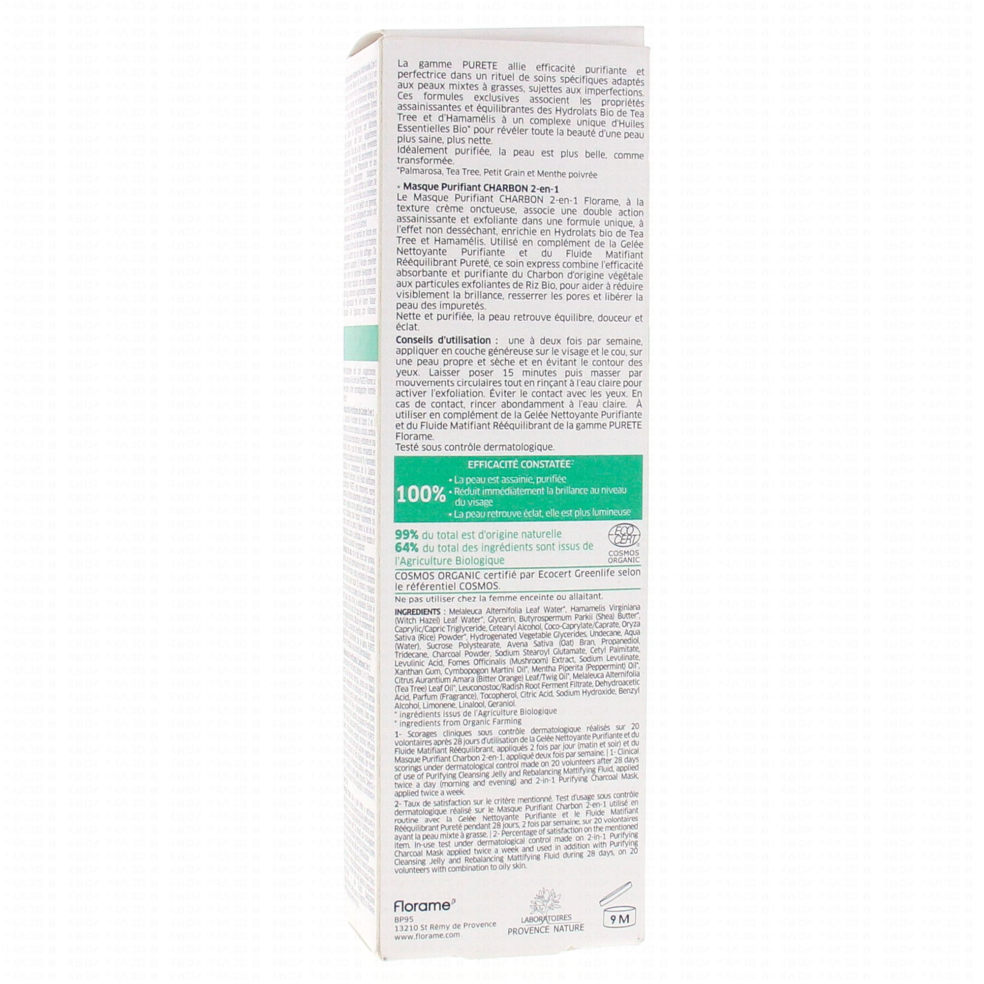FLORAME Pureté - Masque purifiant Charbon 2en1 tube 65ml