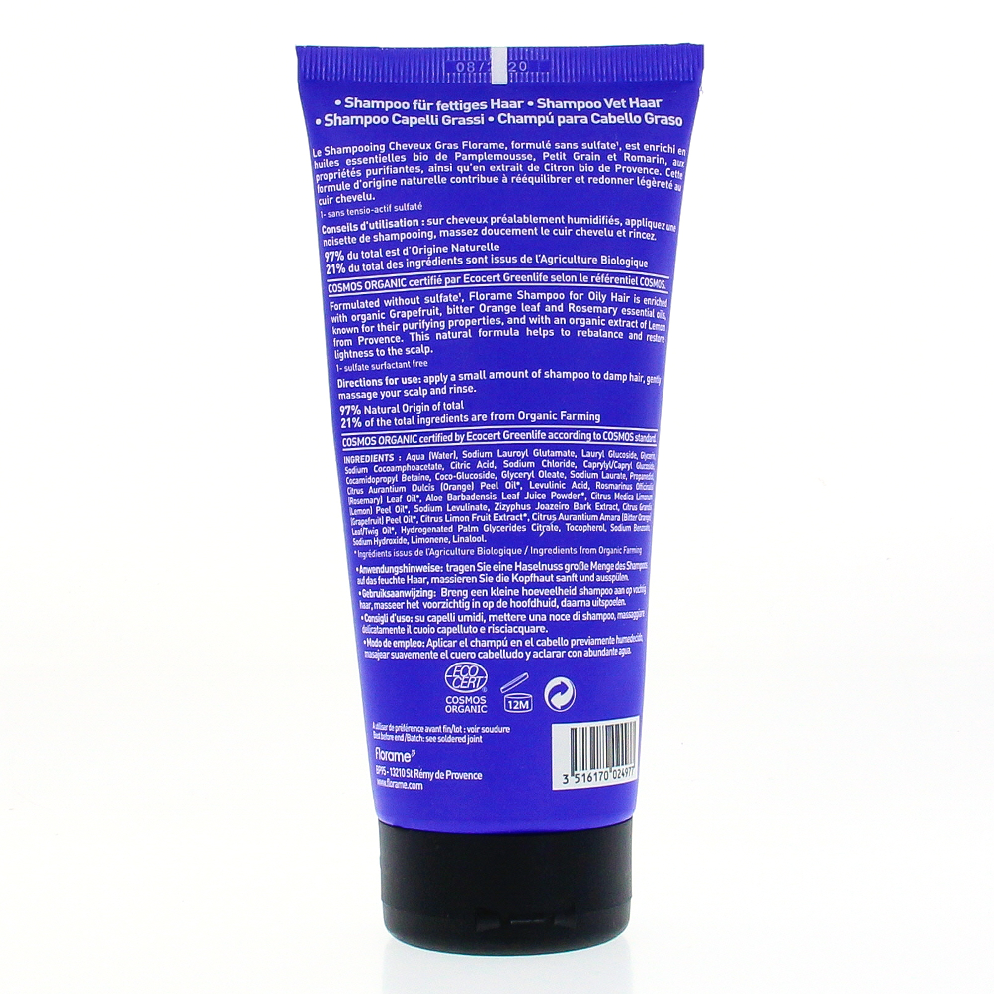 Enrichi en extrait de citron, associé aux huiles essentielles pamplemousse, petit grain et romarin aux vertus purifiantes, le shampooing cheveux gras de Florame rééquilibre et redonne légèreté au cuir chevelu sans les agresser.