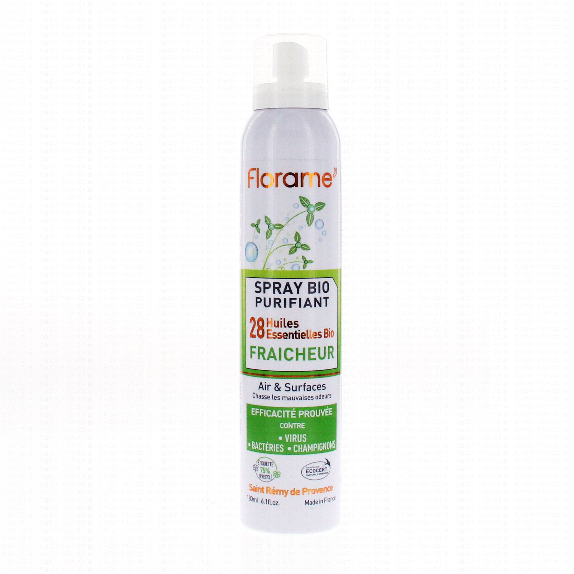 Le Spray Purifiant Bio Fraîcheur Florame, à l'efficacité prouvée, vous aide à garder votre intérieur propre et sain en vous débarrassant des bactéries, champignons, levures et virus tout en douceur. Ce vaporisateur vous permet de purifier l'air et les surfaces de toute la maison. Sa synergie de 28 huiles essentielles issues de l'agriculture biologique, dont la menthe, l'eucalyptus, la gaulthérie et la térébenthine, libère des fragrances fraîches et délicates.